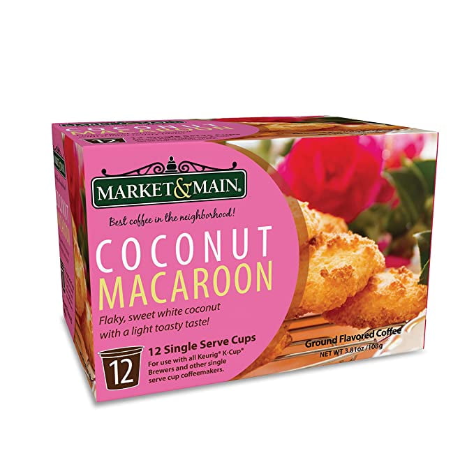 Market & Main Coconut Macaroon, Medium Roast, Single Serve One Cup Coffee pods, 12 count