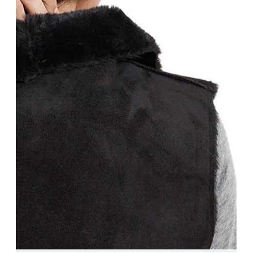 - Faux-fur collar and front, faux-suede back