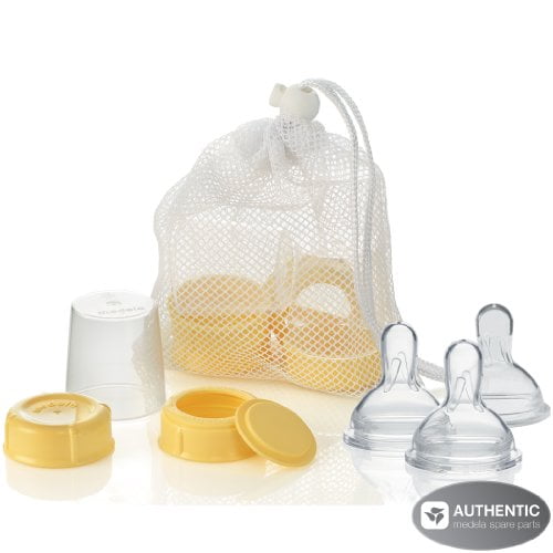 Medela Breastmilk Bottle Spare Parts WITH Three Medium-Flow Wide Base Nipples