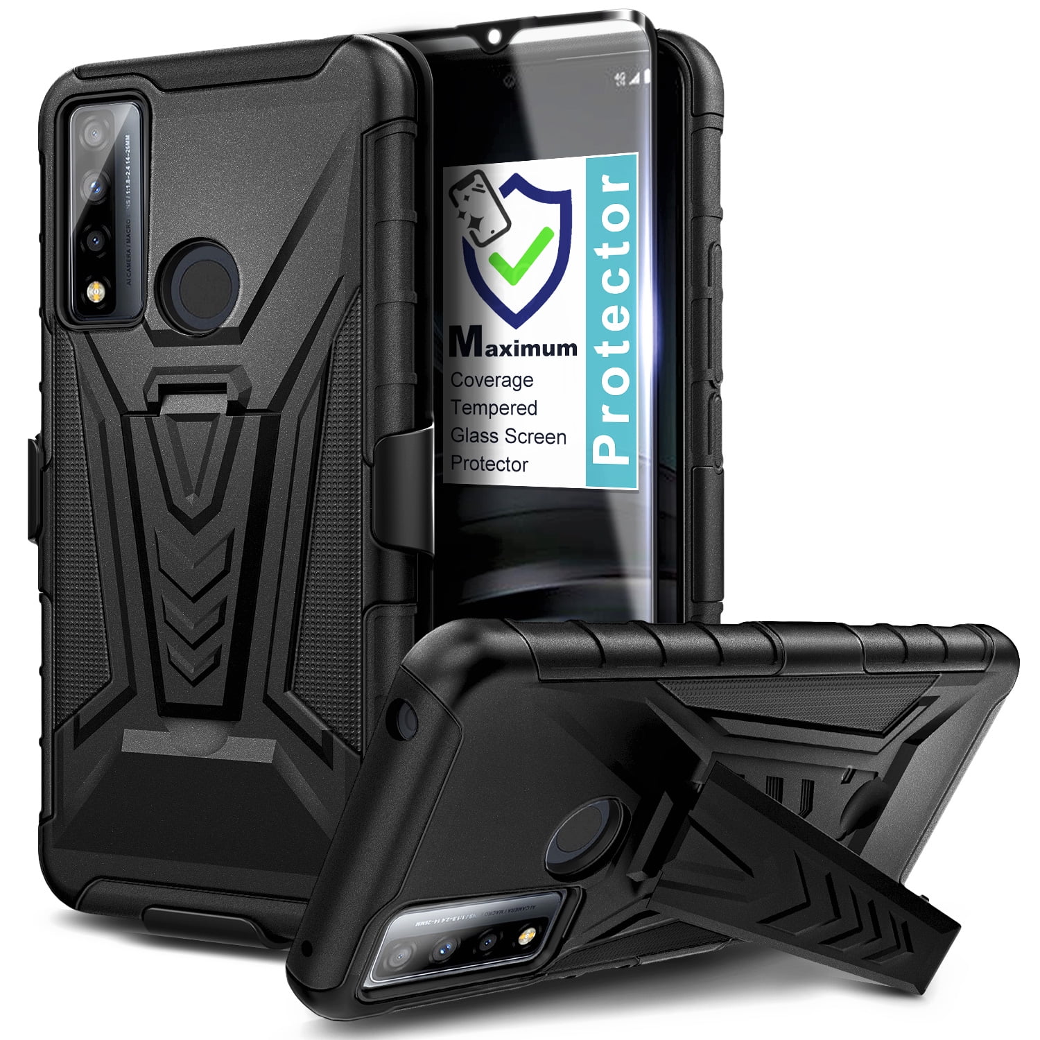 Nagebee Case for TCL 20 XE with Tempered Glass Screen Protector (Full Coverage), Belt Clip Holster with Built-in Kickstand, Heavy Duty Shockproof Armor Rugged Case (Black)