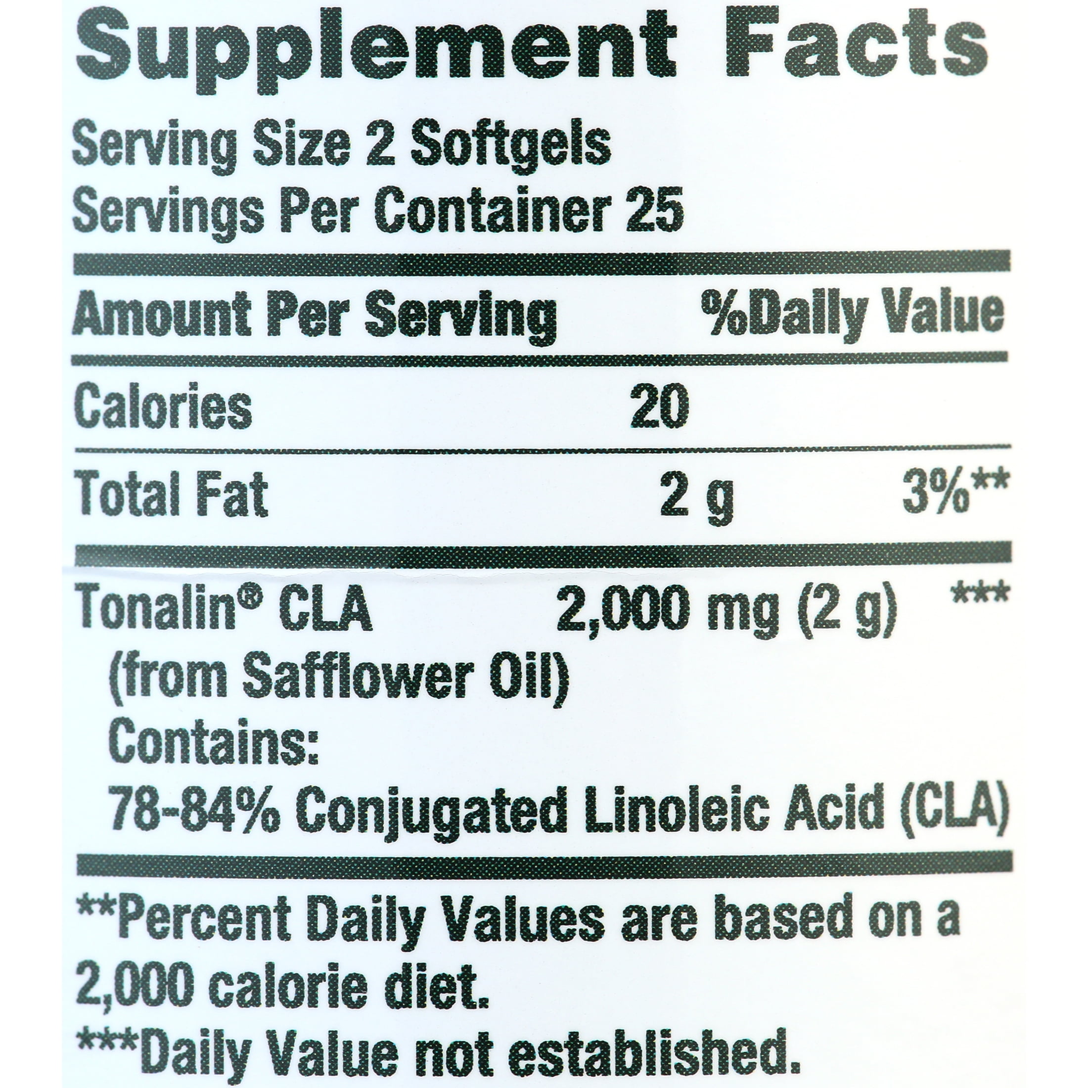 People who exercise will be interested in adding Nature’s Bounty CLA Tonalin 1000mg to their daily routine. CLA (conjugated linoleic acid), a slightly altered form of the essential fatty acid linoleic acid, is known for its health benefits when it comes to providing support for healthy body composition and tone.* Our Nature’s Bounty Tonalin CLA formula is made from Safflower oil. These rapid-release softgels should be combined with a reduced-calorie diet and daily exercise program.