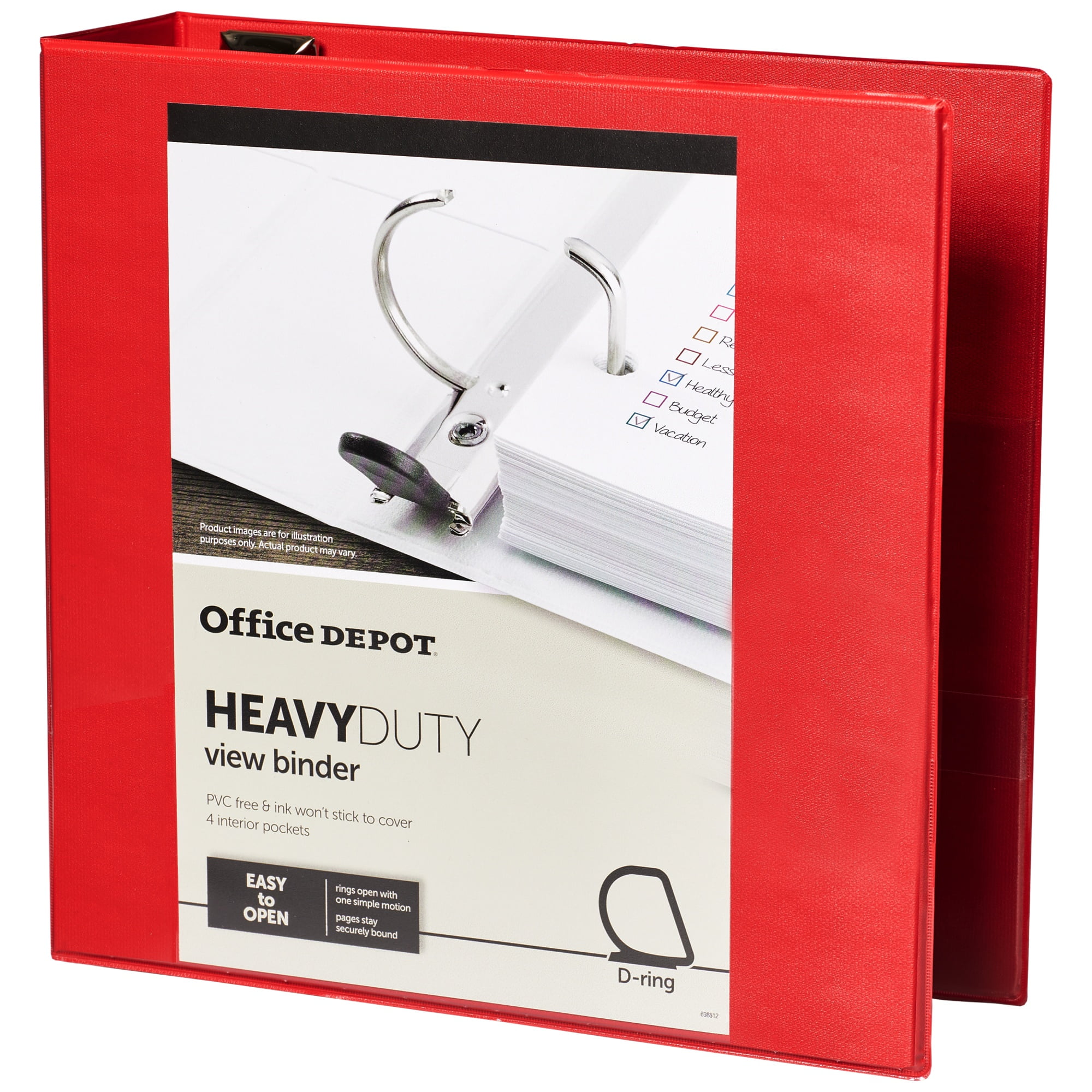 - Ensure your paper work is organized and protected with this Office Depot heavy-duty D-ring binder. Compatibility with standard three-hole punched pages makes it easy to gather your papers for storage, while the binder board construction delivers durability to handle the workday or multiple classes. Featuring nonstick polypropylene covers, this Office Depot heavy-duty D-ring binder resists ink transfer to keep your writing clear and readable.