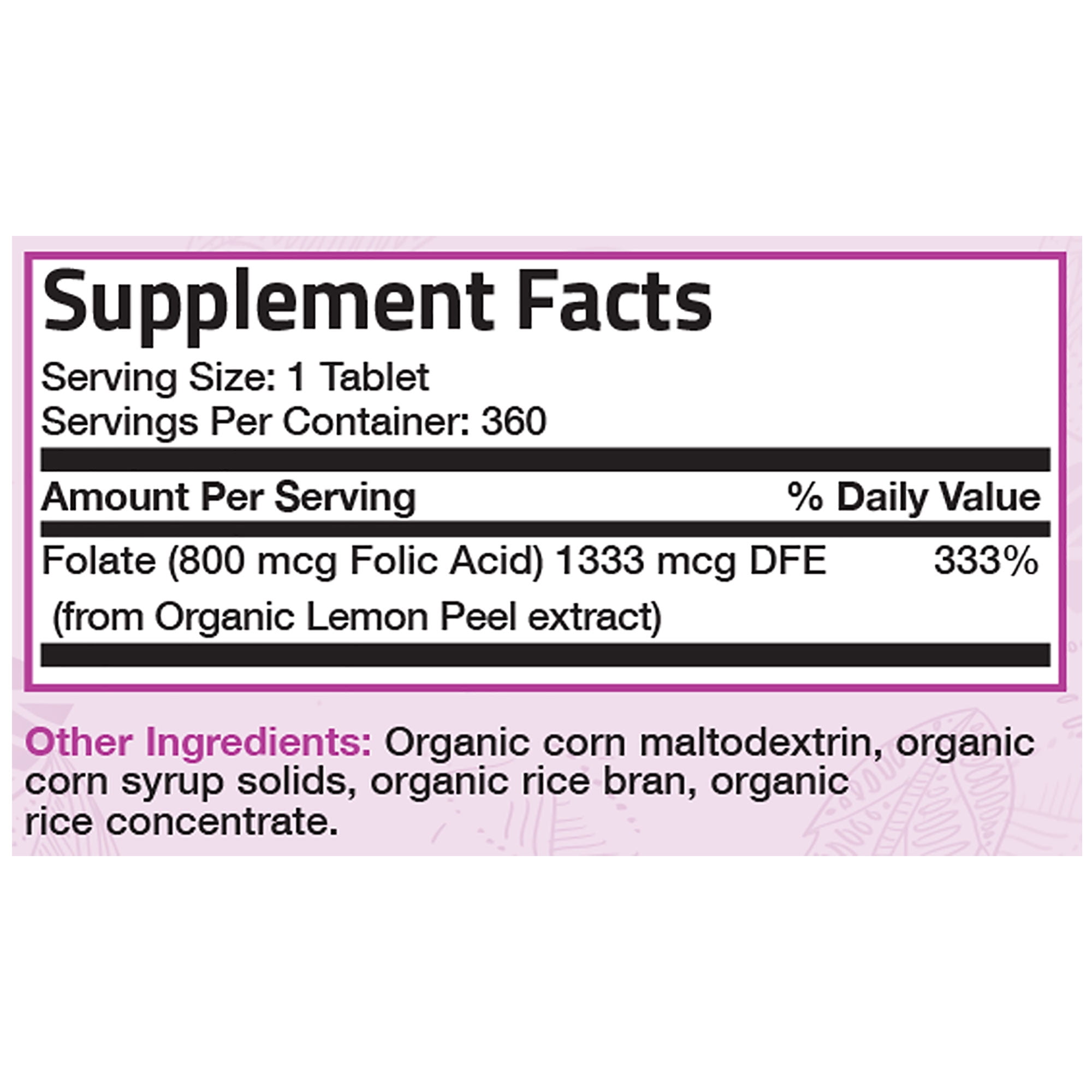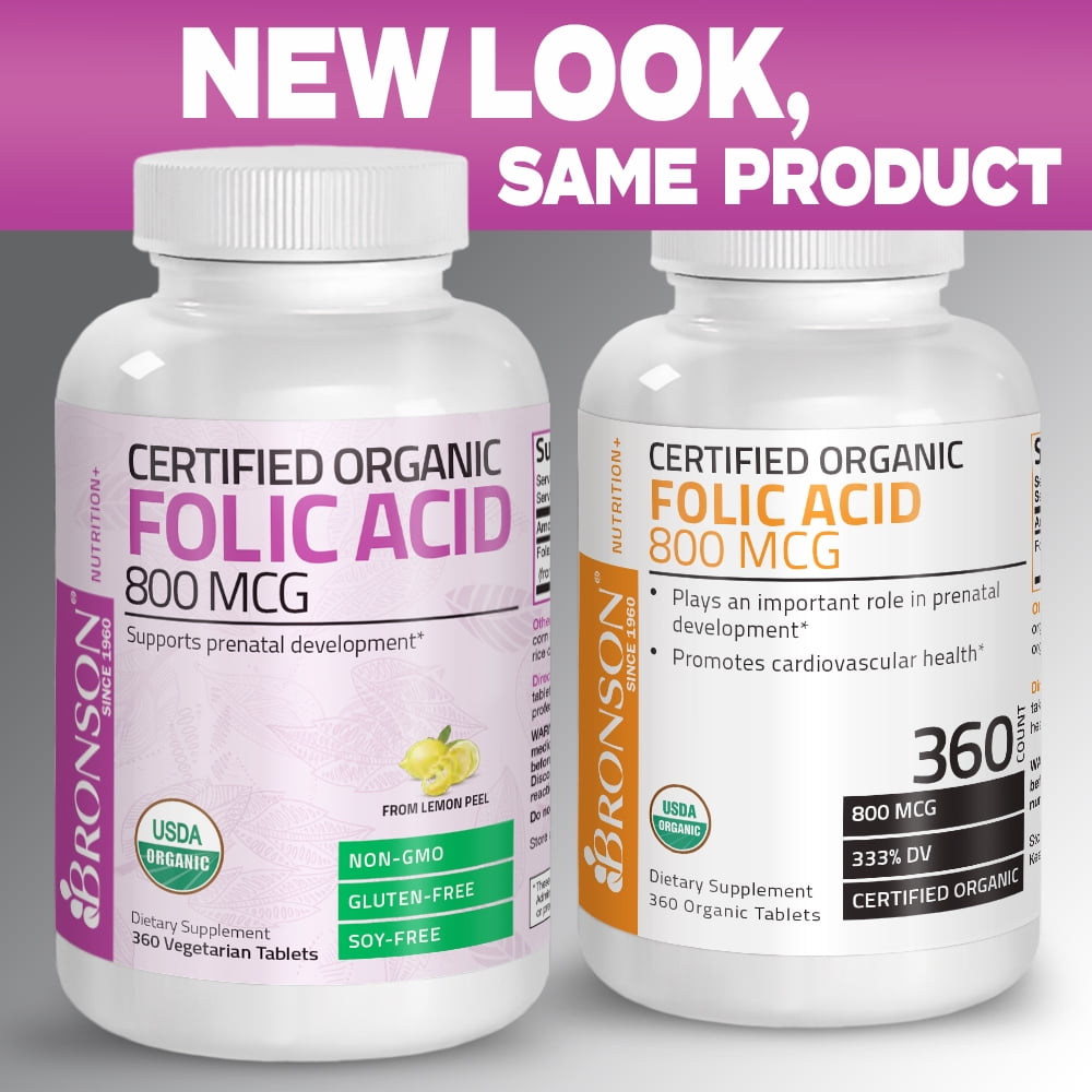 Organic Folic Acid – never too early to start taking organic supplements. Why organic? Organic products are good for you and good for the environment. Certified organic whole foods are responsibly harvested and provide more of the healthy benefits that nature intended! The daily bioactive guarantee. Natural folic acid (800 mcg per tablet) from certified organic whole lemon peel extract. All of the naturally-present bioflavonoids from certified organic whole lemon peel. Water extracted lemon peel free of solvents and volatile impurities. Organic Folic Acid plays an important role in prenatal development and supports cardiovascular health.* 100% natural-source Folic Acid – free of pesticides, fertilizer and preservatives. Women who consume healthful diets with adequate folic acid may reduce their risk of having a child with birth defects of the brain or spinal cord. Folic acid intake should not exceed 250% of the DV (1000 mcg). In addition, folic acid has been shown to help maintain healthy levels of homocysteine, supporting cardiovascular health. Each Bronson Laboratories Folic Acid tablet provides 800 mcg of folic acid (200% DV). Bronson Laboratories Folic Acid utilizes only certified organic whole lemon peel extract. Lemons are grown on an organic farm without chemical pesticides or fertilizers and water extracted to maintain purity. In addition to the folic acid, the extract provides bioflavonoids naturally present in lemon peel. * These statements have not been evaluated by the Food and Drug Administration. This product is not intended to diagnose, treat, cure or prevent any disease.