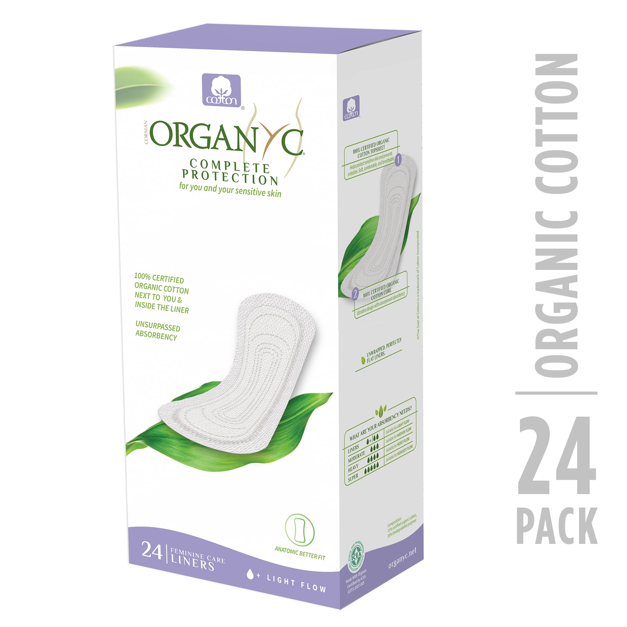 Organyc 100% Certified Organic Cotton Panty Liner, Light Flow, 24 Count, Flat Packed