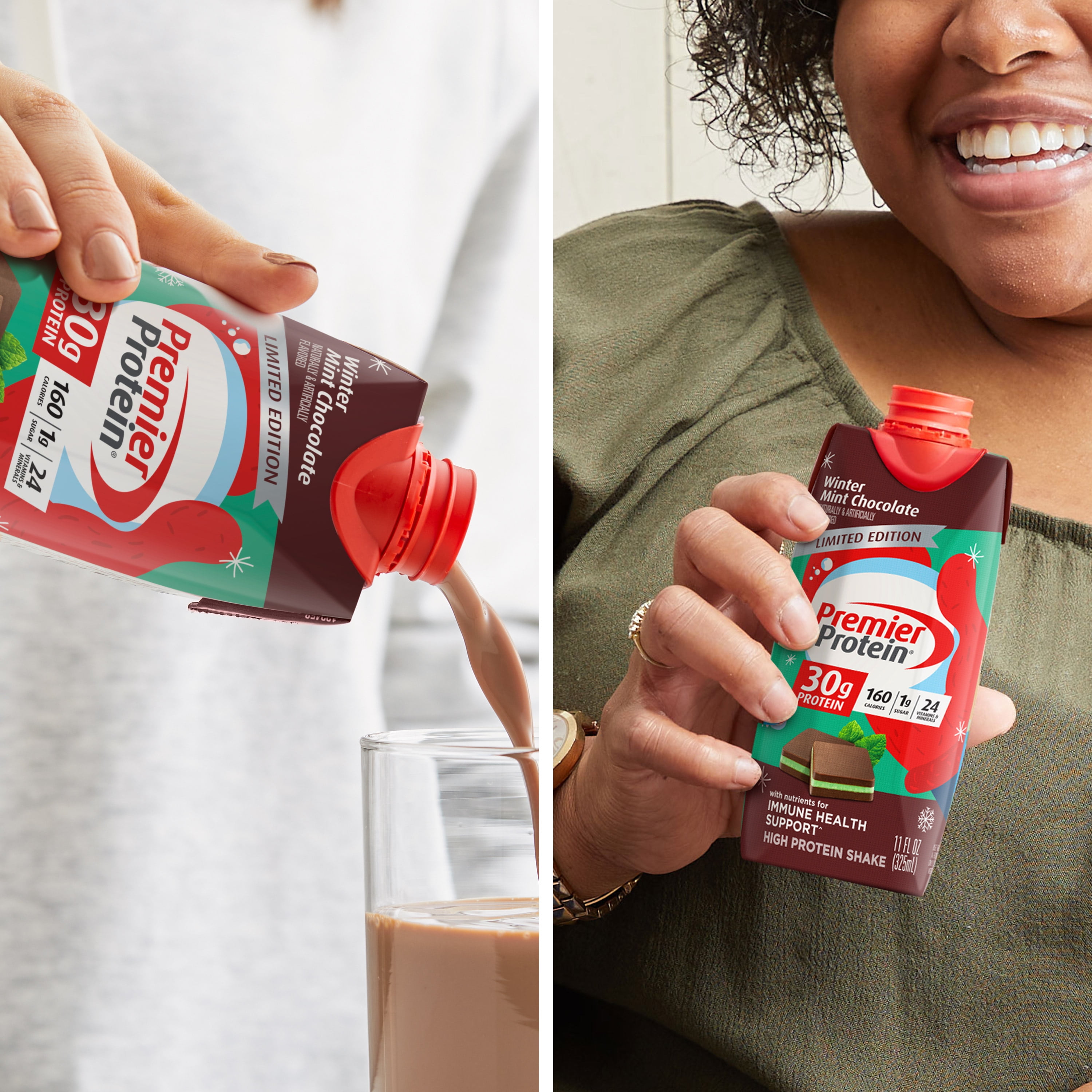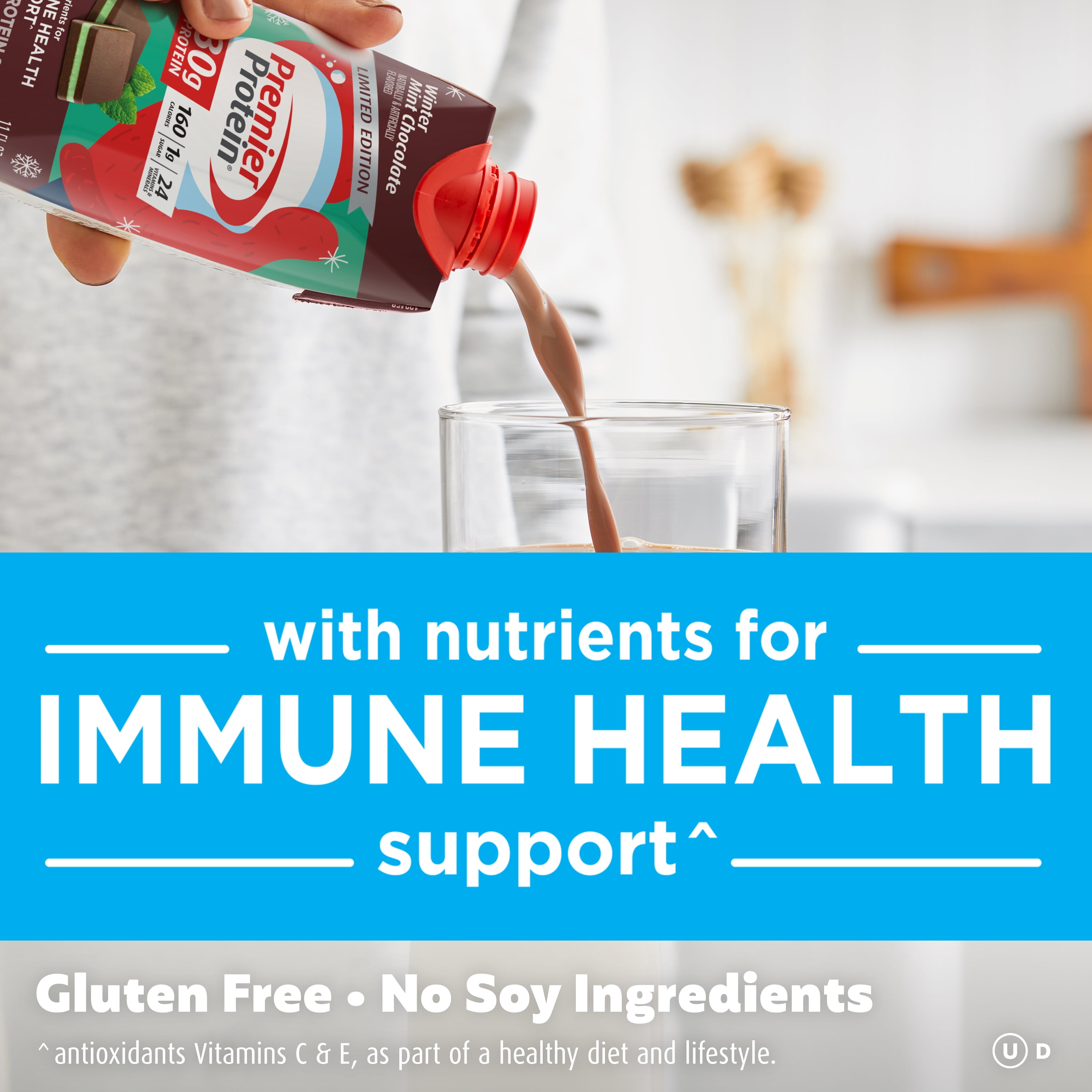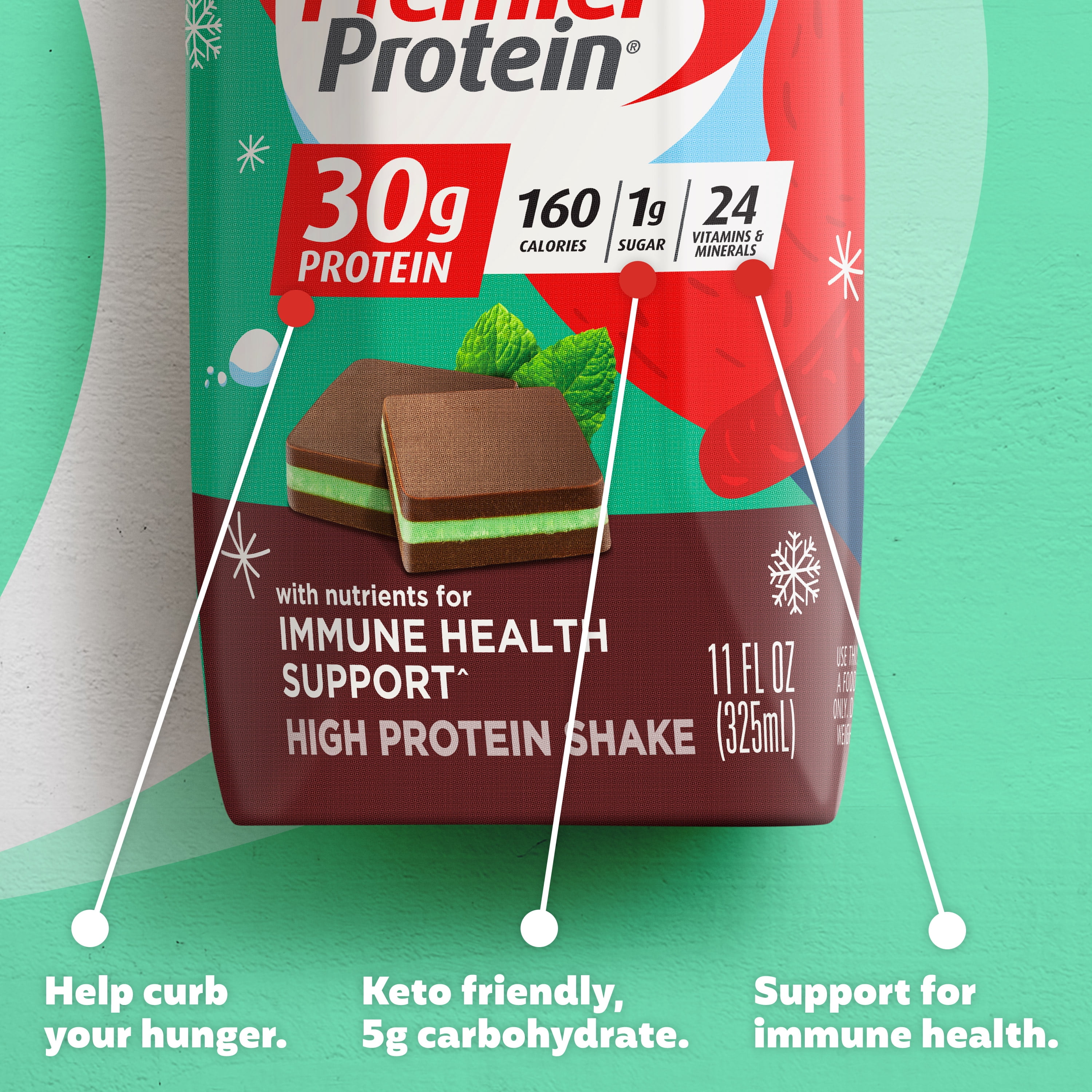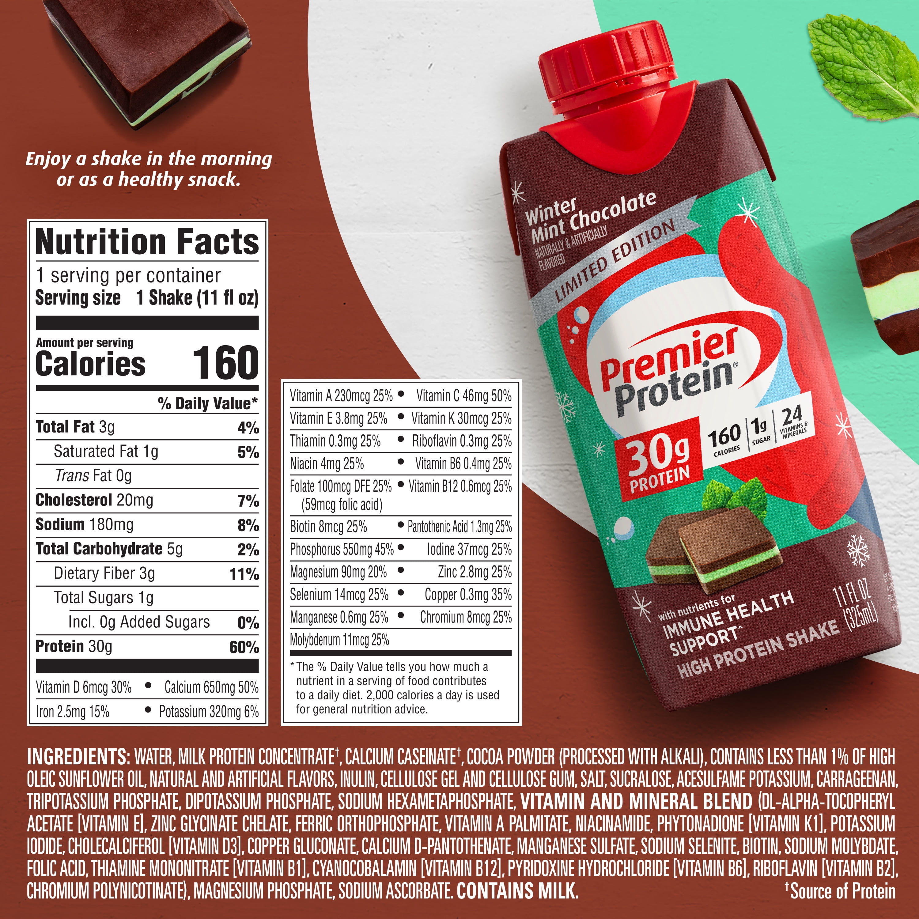 Packaged in a 11.5oz bottle, each Premier Protein Shake contains 30 grams of protein, complete with all the essential amino acids, 1g of sugar, 3-5g carbs (depending on flavor), 160 calories, 24 vitamins & minerals, and is also low in fat. We use a blend of milk protein and casein in our shakes to help fuel muscles quickly and for several hours to help support your goals. Enjoy a shake as a healthy snack, a breakfast on-the-go, an afternoon snack, or as pre- or post-workout fuel. They are delicious as is but are also highly customizable. Try blending with your favorite fruits and vegetables for a delicious smoothie or adding to cereal or oatmeal. Available in 11 additional delicious flavors: Chocolate, Vanilla, Cafe Latte, Caramel, Cookies & Cream, Strawberries & Cream, Bananas & Cream, Peaches & Cream, Cinnamon Roll, Chocolate Peanut Butter and Cake Batter Delight.