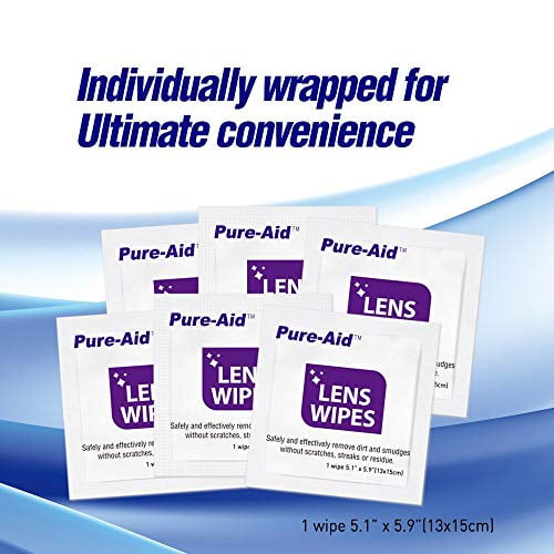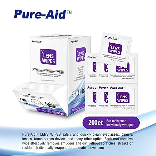 Pure-Aid LENS WIPES safely and quickly clean eyeglasses, camera lenses, touch screen devices and many other optics. Each non-abrasive wipe effectively removes smudges and dirt without scratches, streak or residue. Individually wrapped for ultimate convenience.