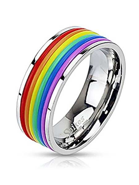 Rainbow Pride Rubber Striped Stainless Steel Band Ring – Sizes 7-12 Available