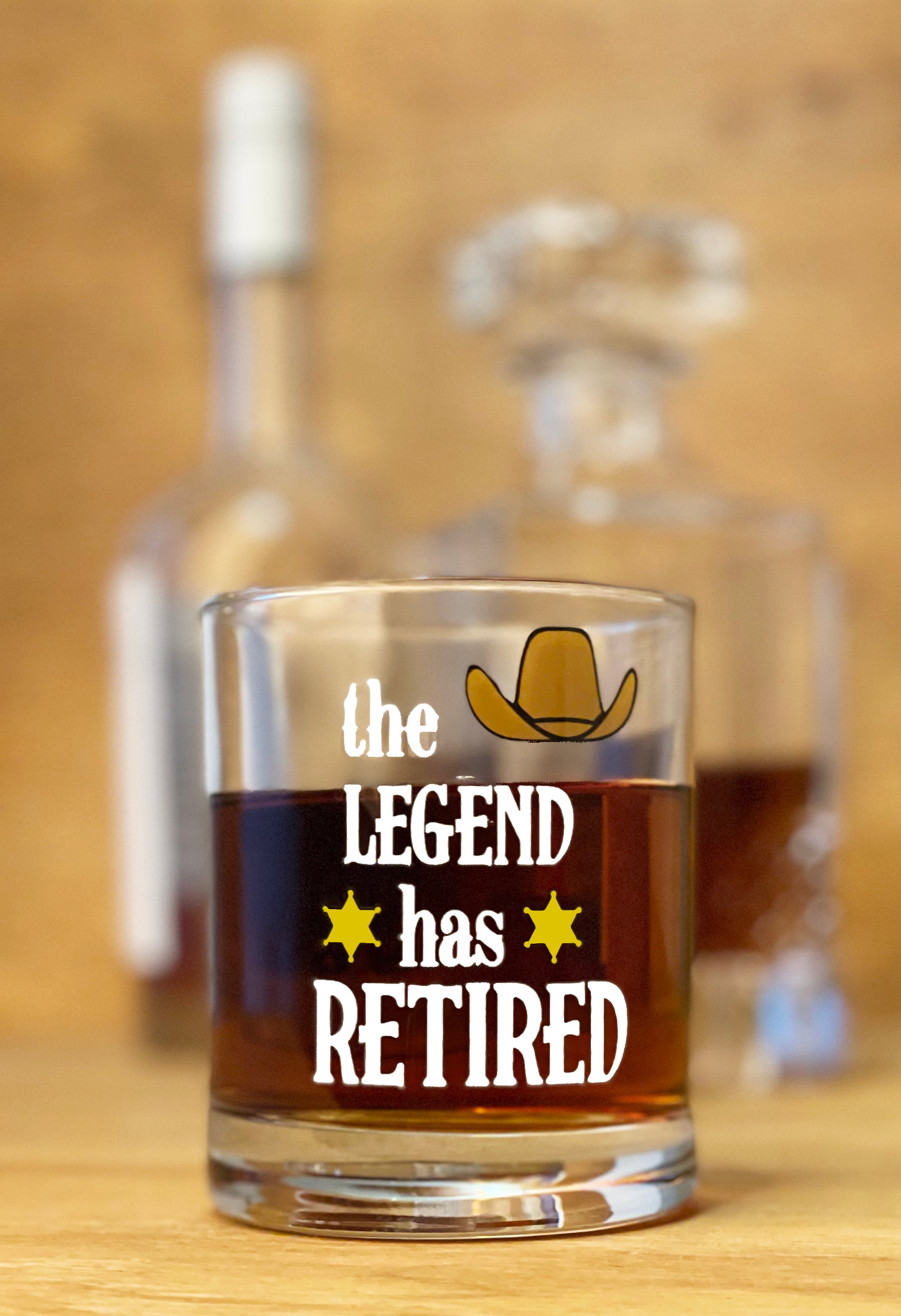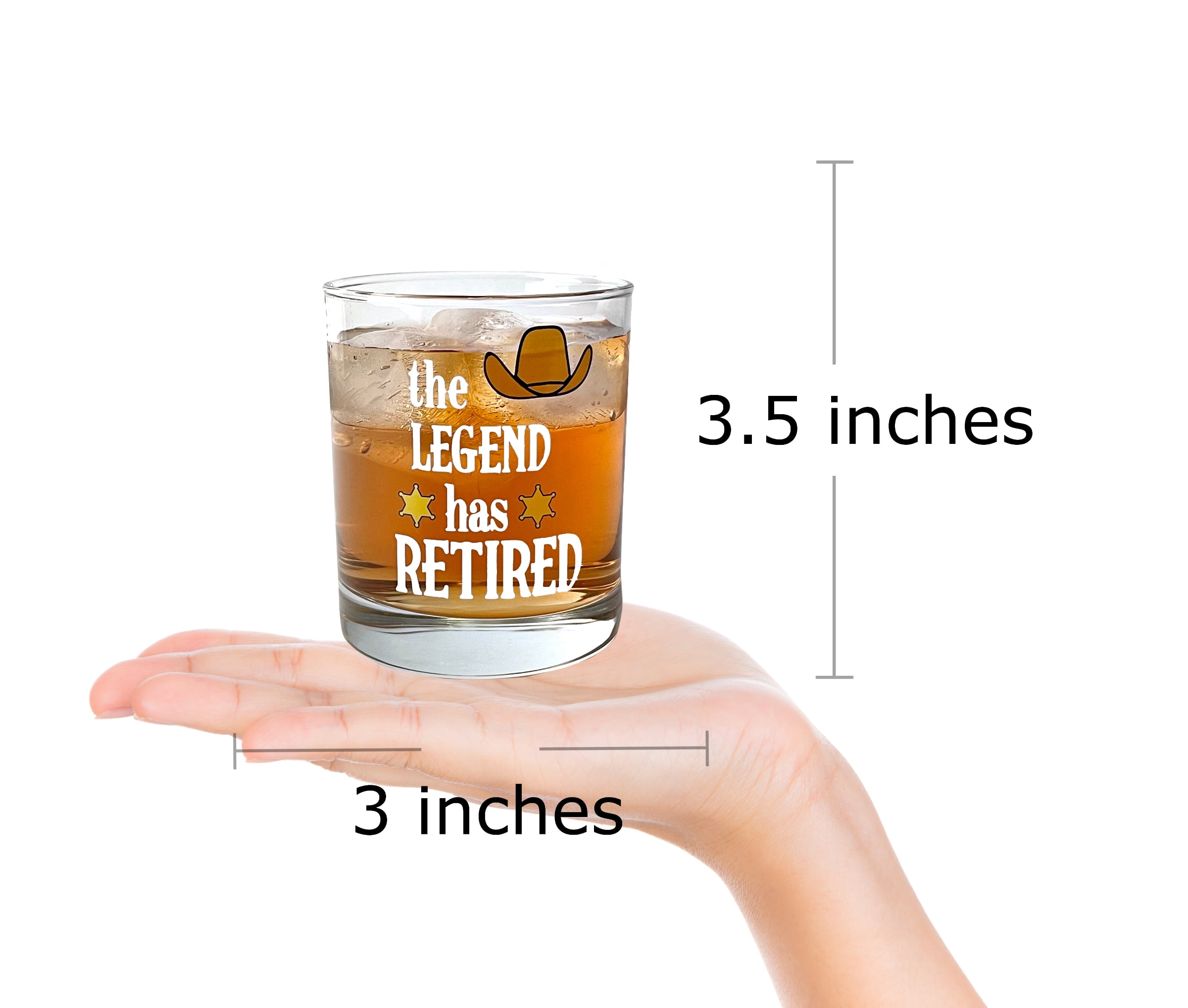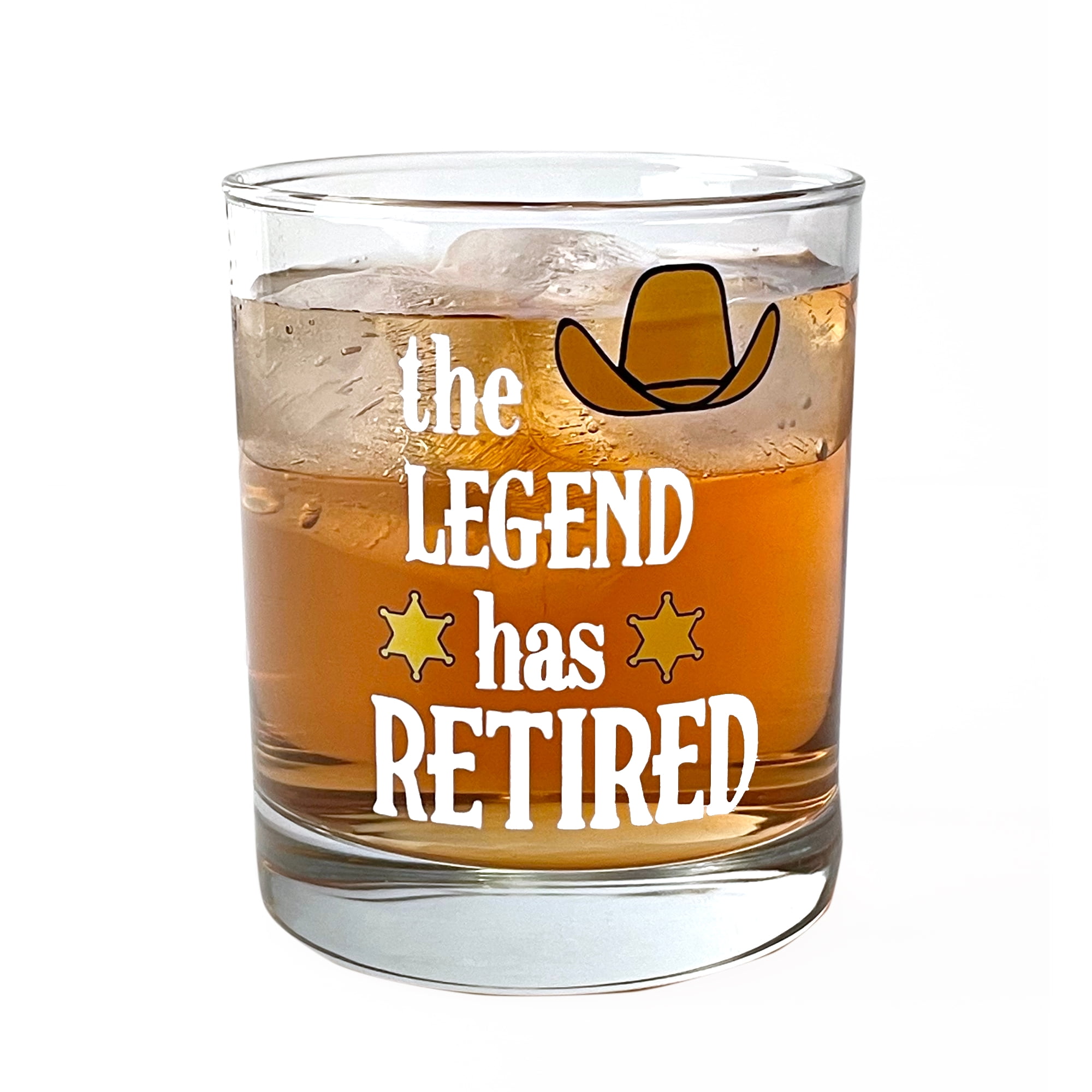 Our "The Legend Has Retired" Whiskey Glass makes a great gift for a coworker, boss, teacher, military, police, family or best friend!