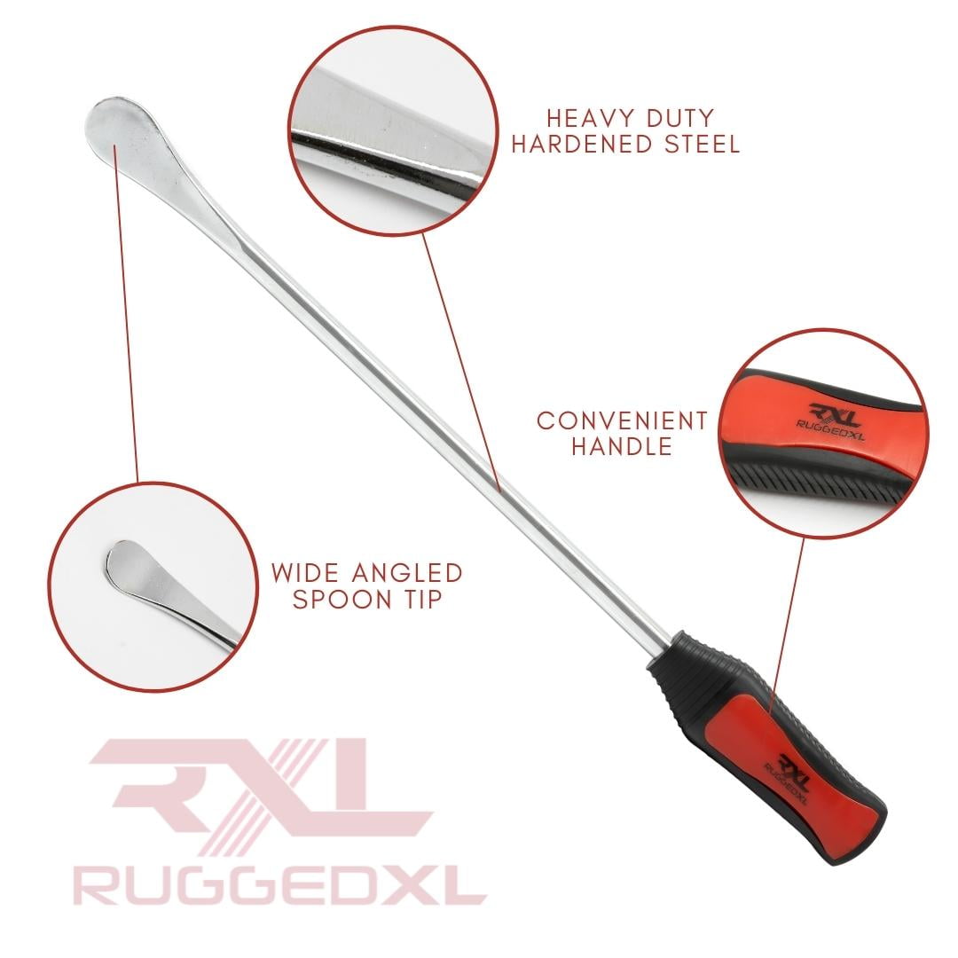 RuggedXL Tire Iron, Tire Spoon, Tire Lever Kit, Tire Changing Tool, Rim Protectors, Valve Tool, Valve Cores (3 Pack)