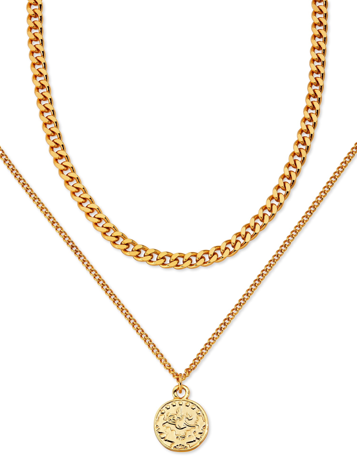 Scoop Womens Brass Yellow Gold-Plated Layered Coin Necklace
