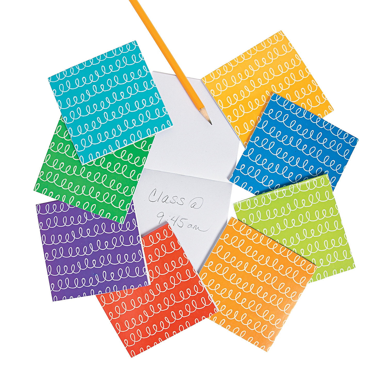 These cute mini notepads in assorted colors make ideal school supplies. Hand them out as student giveaways to encourage children to write down reminders homework assignments and take small notes. They’re also great party favors when you pop them into treat bags along with pens stampers stickers and erasers. Features 8 different color covers. Paper. (2 dozen per unit) 4" x 4" 30 blank pgs. © OTC