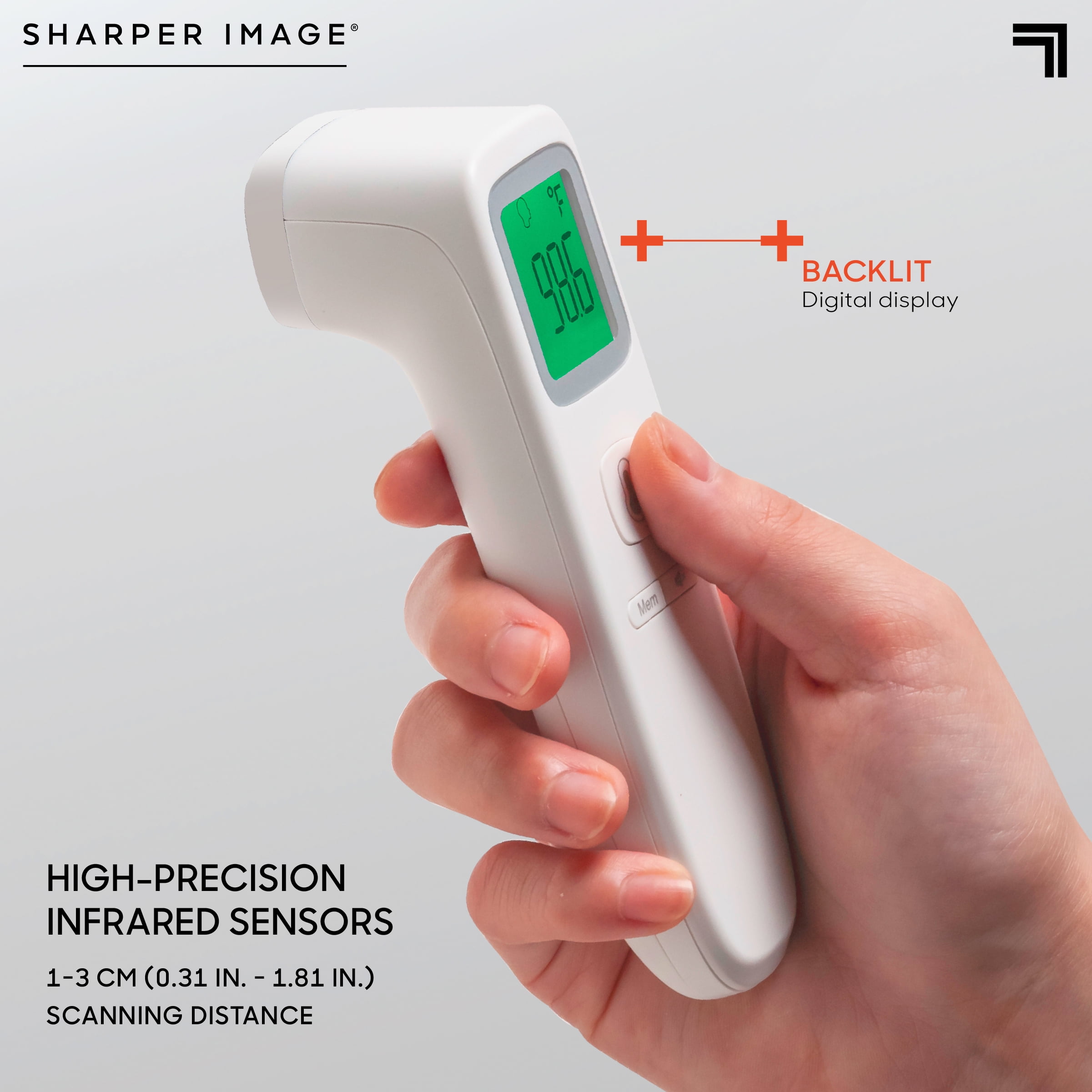 - PRECISION: The Sharper Image Thermometer uses precise, infrared sensors to accurately assess the temperature. It can be used up to 3CM away for contactless measurements