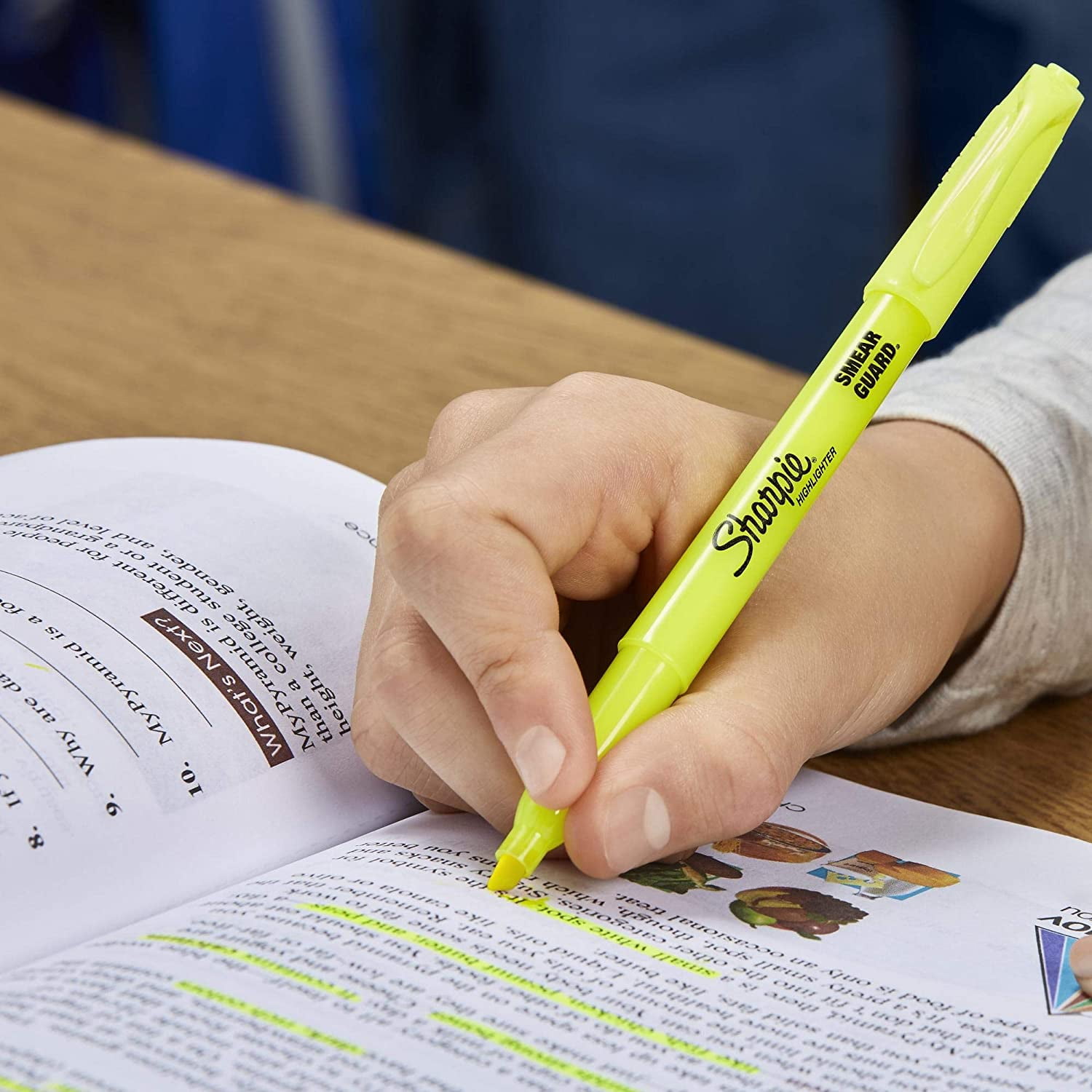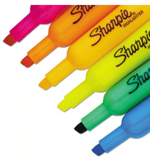 - Includes fluorescent pink, orange, yellow and blue Sharpie highlighters