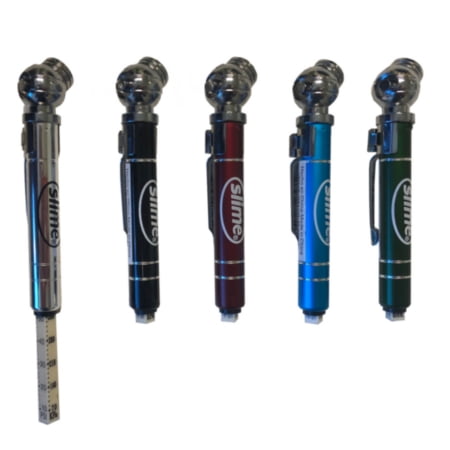 Slime Pencil Tire Gauges are the ultimate solution to checking your tire pressure on the go! This mini pencil tire gauge is magentic, measures from 10-50 psi and comes in a variety of different color options!