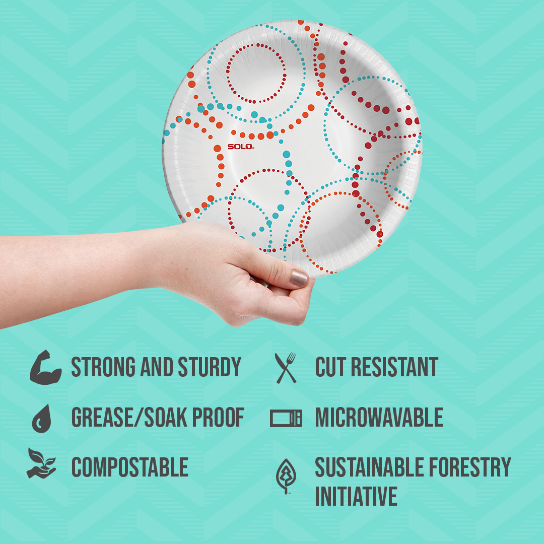 - Compliments other Solo paper dinnerware items and red party cups (each sold separately).