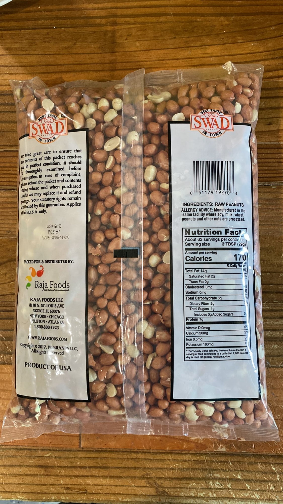 SWAD Jumbo Peanuts – 4 Lb (1816g). These peanuts are first water blanched, which gives them their fresh & unique crunchiness, and then small bunch roasted in pure peanut oil. It can be used in various dishes.