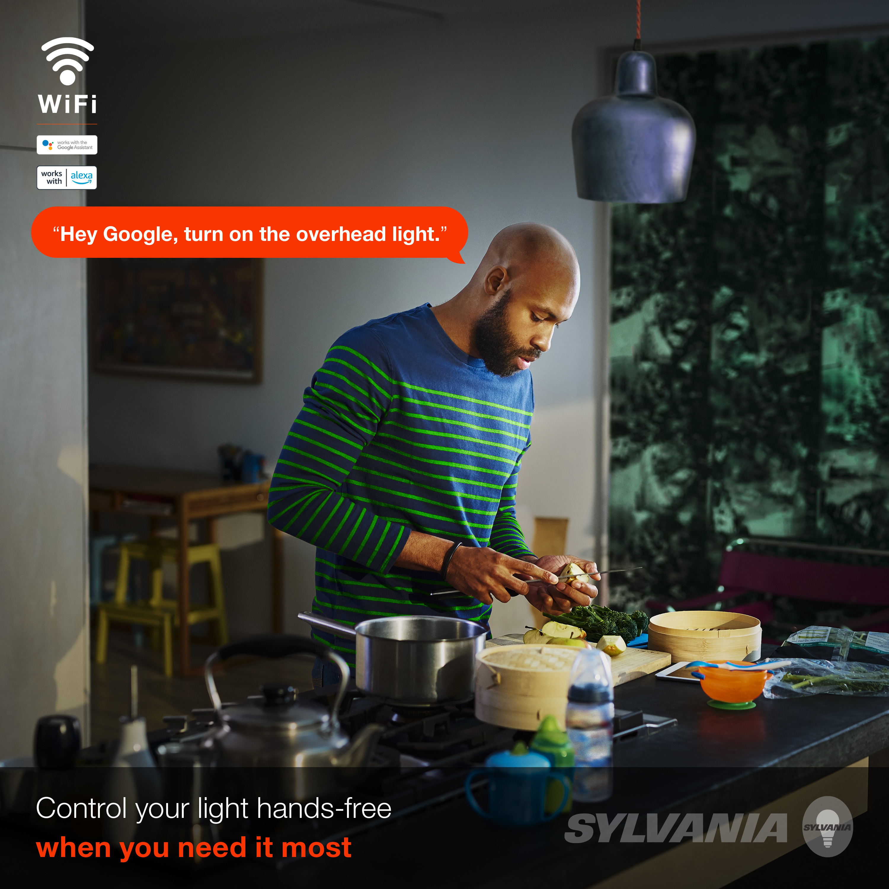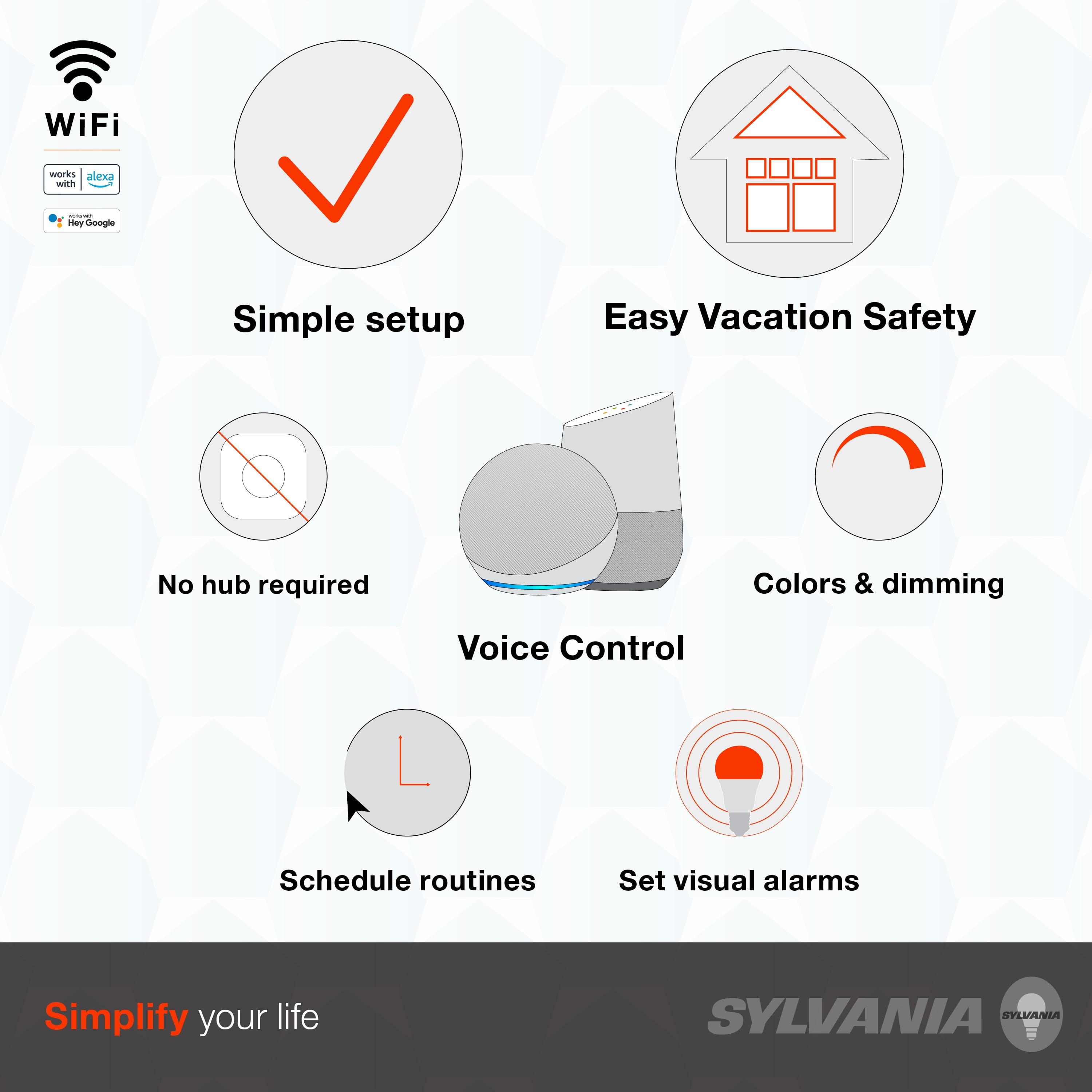 SYLVANIA Wifi Smart Light Bulb, LED 6 watts Equivalent, Soft White Dimmable A19, Works with Alexa and Google Home, 3 Pack