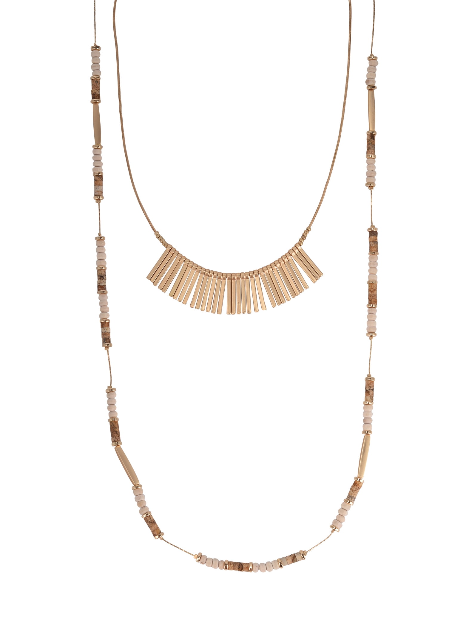 The Pioneer Woman Matte Gold Metal Fringe and Beaded Multi Layer Statement Necklace
