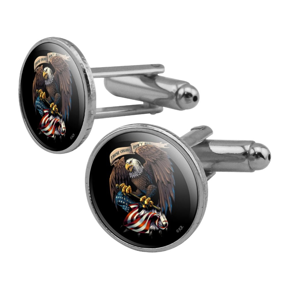 These Colors Don’t Run Patriotic Eagle USA American Flag Round Cufflink Set Silver Color