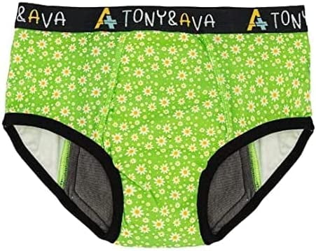 Tony & Ava Pull Ups Underwear for Kids, Highly Absorbent Potty Training & Soft Cotton Girls underwear, Machine-Washable, Overnight, Bikini Snug fit Underwear for Girls, Green Daisy, Medium