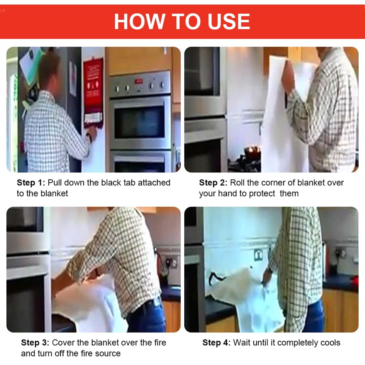 - 【EASY TO USE】: Simply pull down the fire blanket, spread the blanket wide and slowly throw the blanket to cover the fire. (make sure to let it sit there for few seconds) Let the blanket suffocate the fire. Turn off the stove or any heat source.