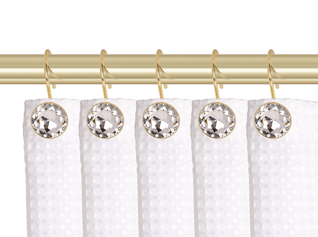 Utopia Alley Shower Rings, Shower Curtain Hooks for Bathroom, Rust Resistant Shower Curtain Hooks Rings, Crystal Design, Set of 12, Gold