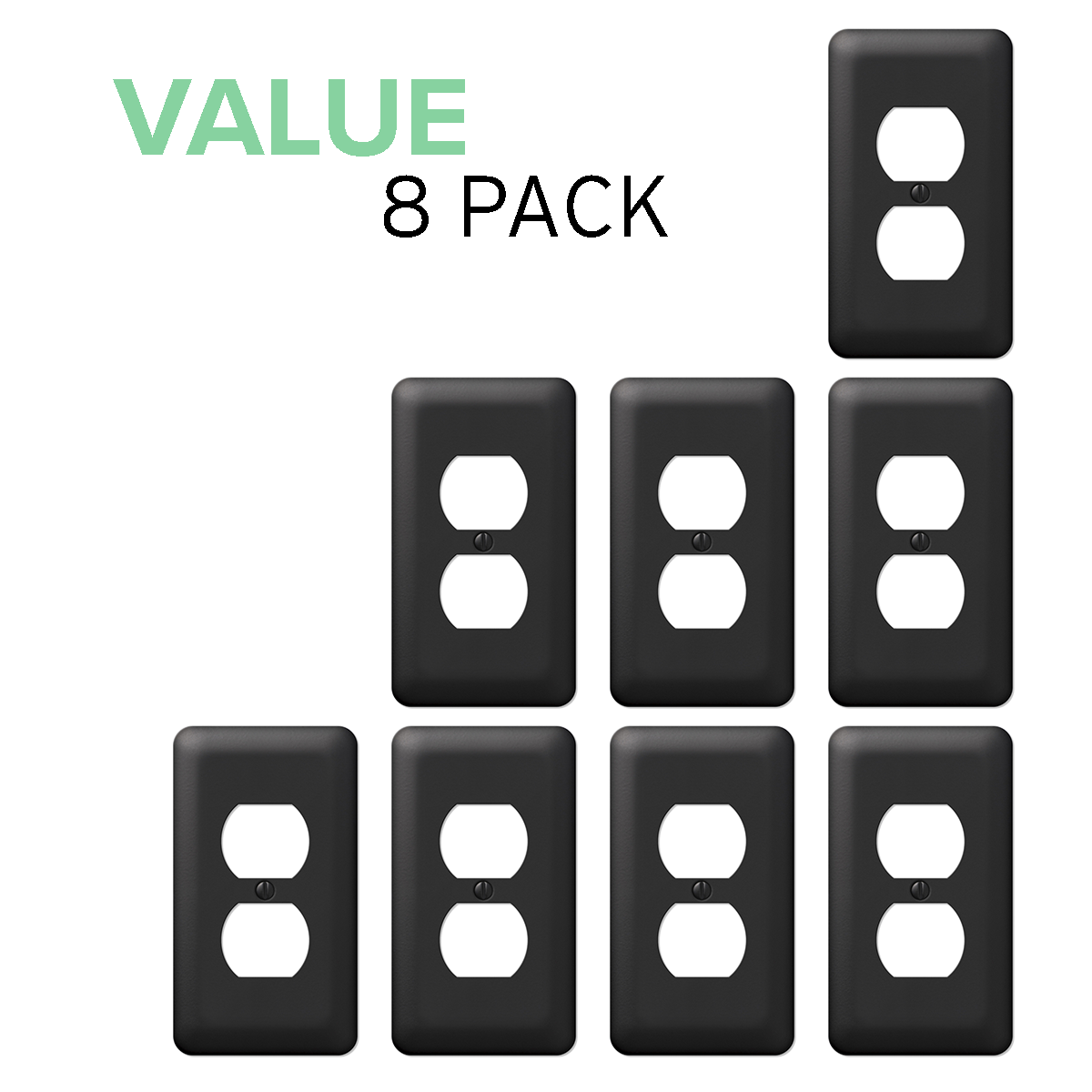 Value 8-Pack Duplex Outlet Wall Plate Decorative Stamped Steel Wallplate, Black
