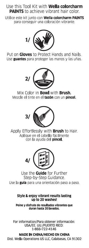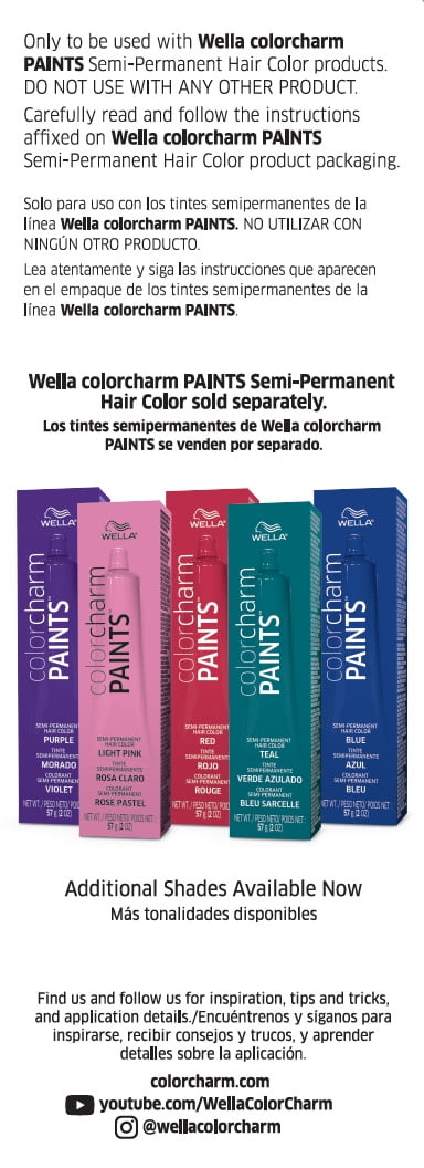 Wella Color Charm Paints Accessories Tool Kit for Hair Color and Hair Dye, 1 Kit. Express yourself with a palette of the world’s most wondrous colors, mixable to create any shade. Pick the colors you want, mix together or mix with the pastelizer to find a lighter shade if you desire. Wella Color Charm PAINTS provides vibrant colors as creative as you are, for long-lasting, fade resistant results. Once your masterpiece is created, the color will fade beautifully on tone, lasting up to 20 washes. PAINTS contain no ammonia, peroxide or parabens. They are ready to go from tube to hair, with no developer needed.Wella Paints Merchandise