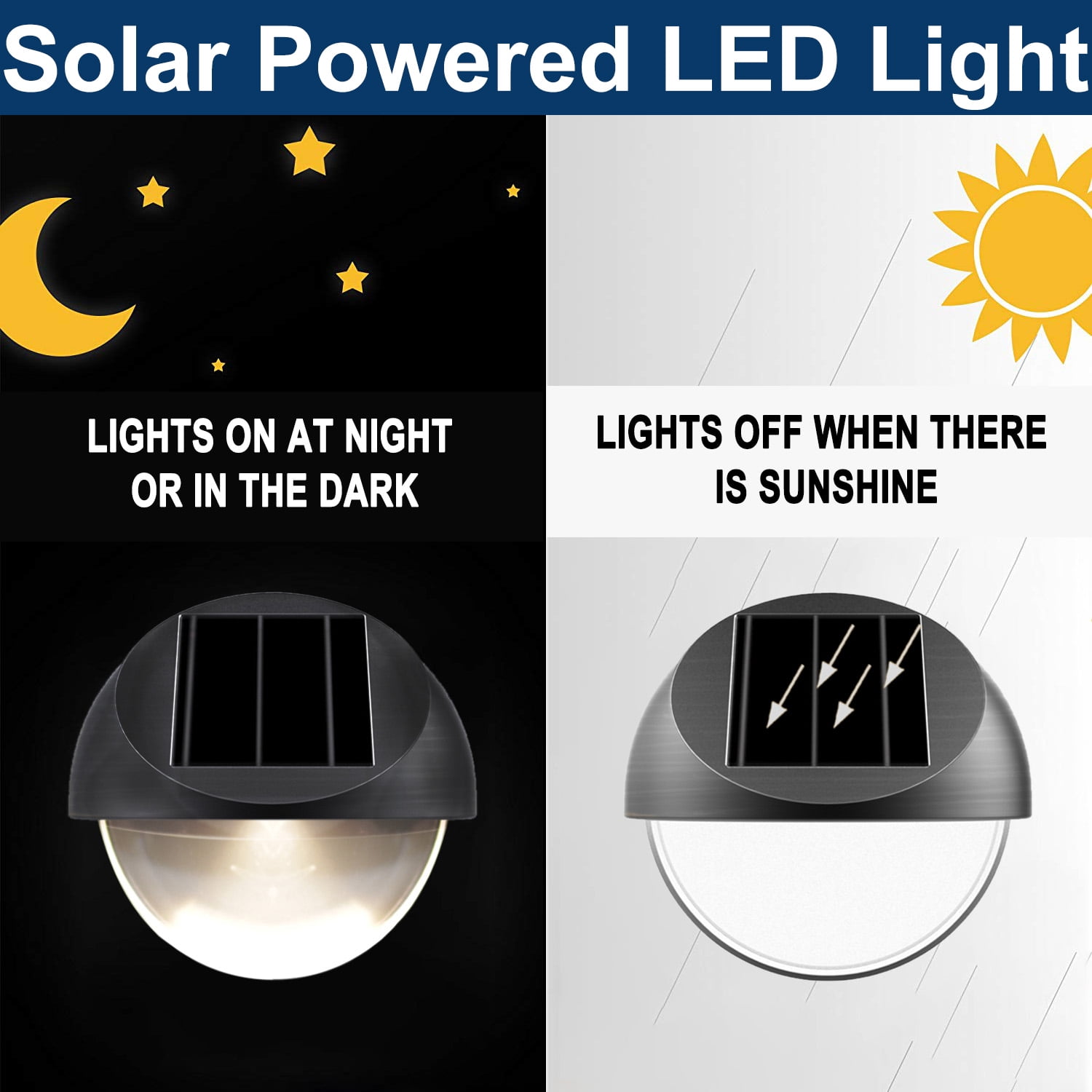 Add simplicity and peace of mind to your back yard with our LED outdoor fence lights. We have combined our intelligent solar technology with built-in sensors that detect the battery capacity by measuring the charge available and regulates the performance to guarantee continuous light all night. While keeping a clean and stylish look with easy installation, no wiring is needed. Simply mount the outdoor lights to a wall, post or stair with the included hardware for customized lighting set up in your own backyard.