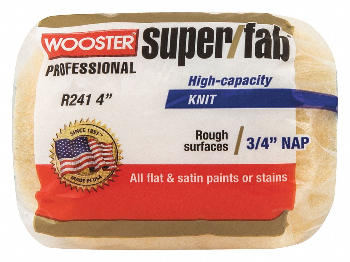 Wooster Super/FAB Paint Roller Cover, 3/4 in Nap, 4 in L, Knit Fabric Cover Polypropylene Core