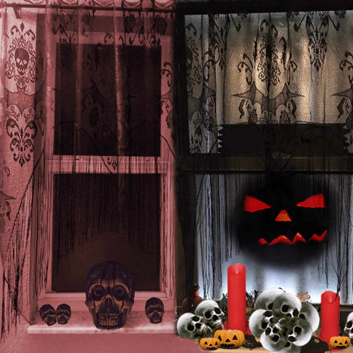 - 【Exquisite Meterial】:Our Halloween decorative curtains are definitely your party’s first choice.Unique seamless one-piece lace design with animated bat and skull pattern looks amazing.