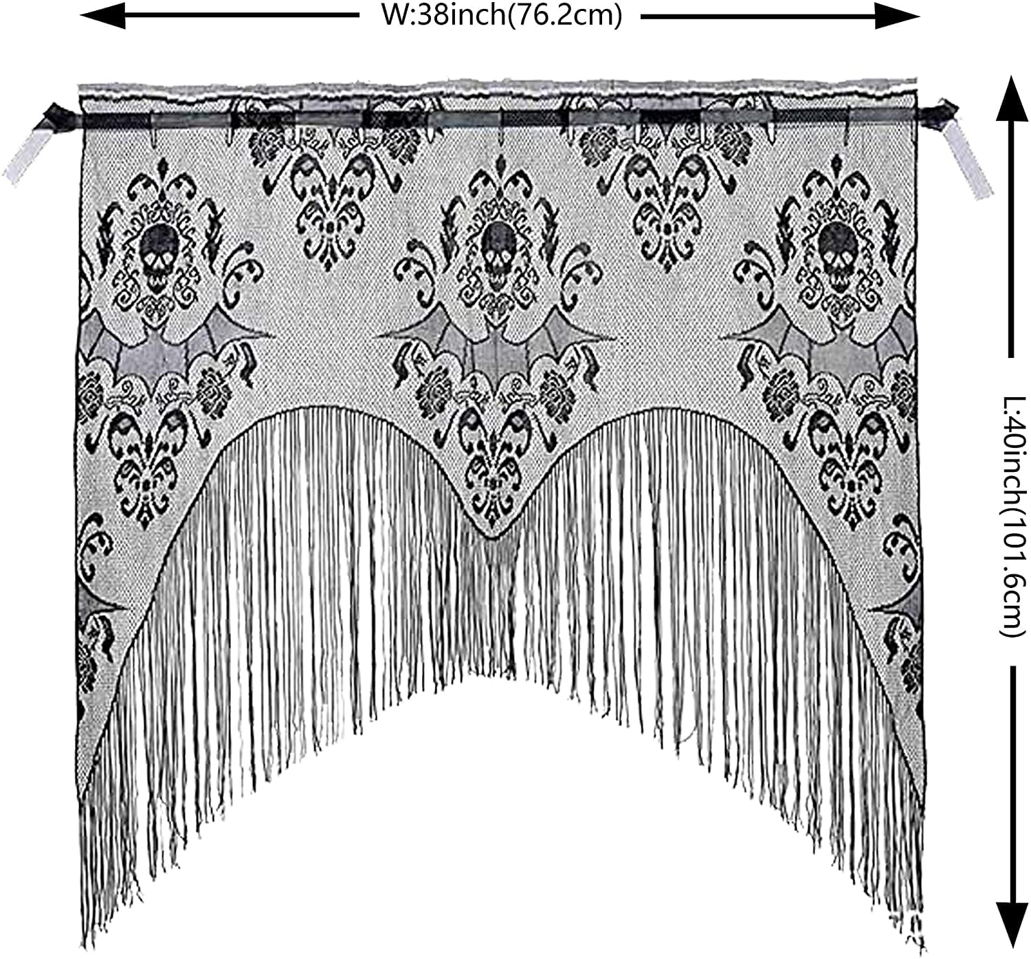 - 【Application】:The black lace curtain in skull bat with tassel is your ideal choice for decorating Halloween party.Just hang it in front of your windows and doors,the light will creat an unforgettable surrounding feeling.