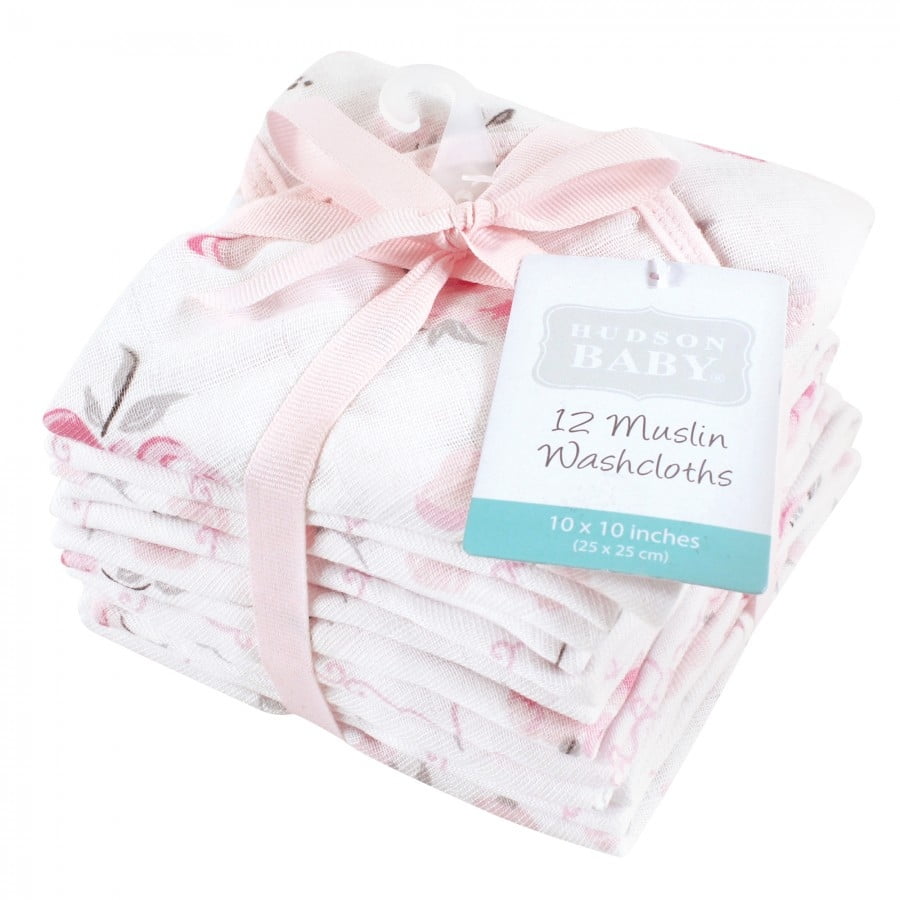Hudson Baby Infant Girl Cotton Muslin Washcloths, Pastel Floral, One Size