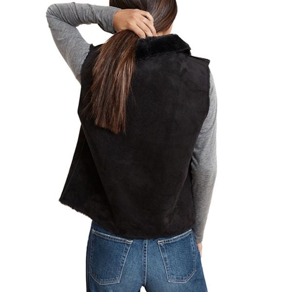 Masseys Women’s Reversible Faux Fur & Faux Suede Vest in Black – 2X