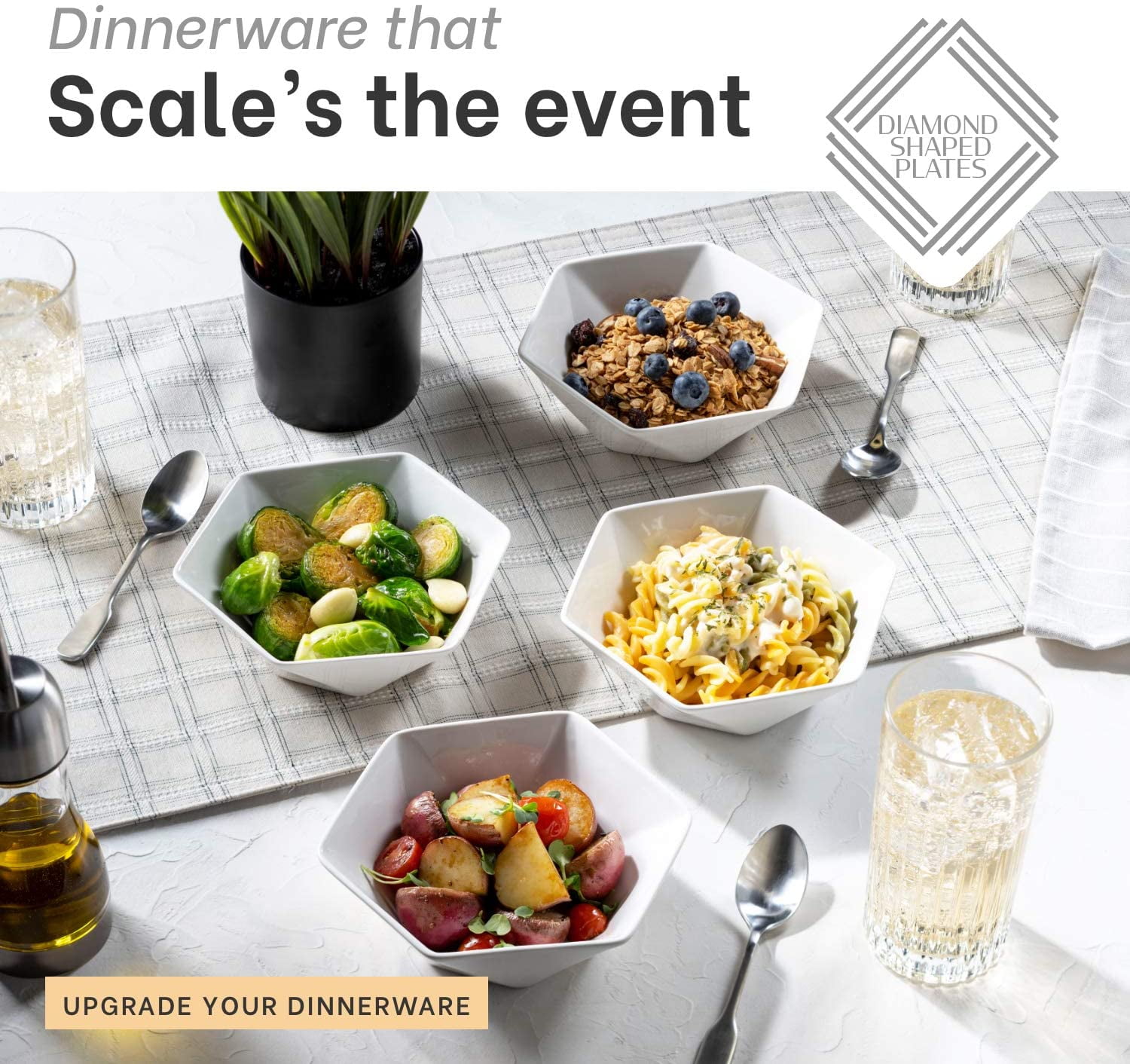 MITBAK 20 Ounce Porcelain Soup Bowls | Set of 6 Diamond Shaped White Serving Bowl Plates For Soup, Ramen, Cereal, Pasta, Fruit, Pho, Salad, Dessert | Decorative Bowls Make Excellent Gift Idea