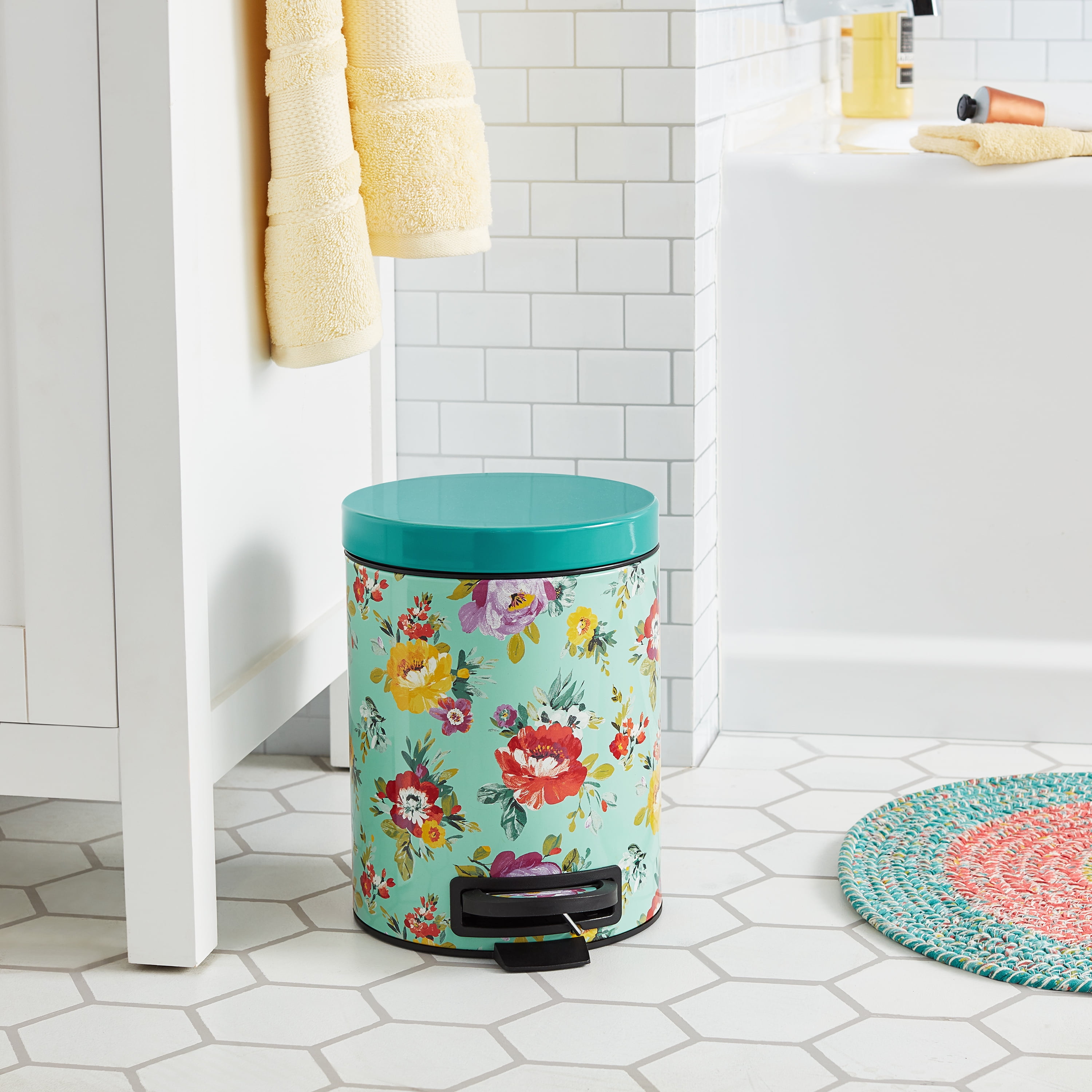 The Pioneer Woman Sweet Romance Stainless Steel Round Bathroom Step Wastebasket, 1.3 Gallon