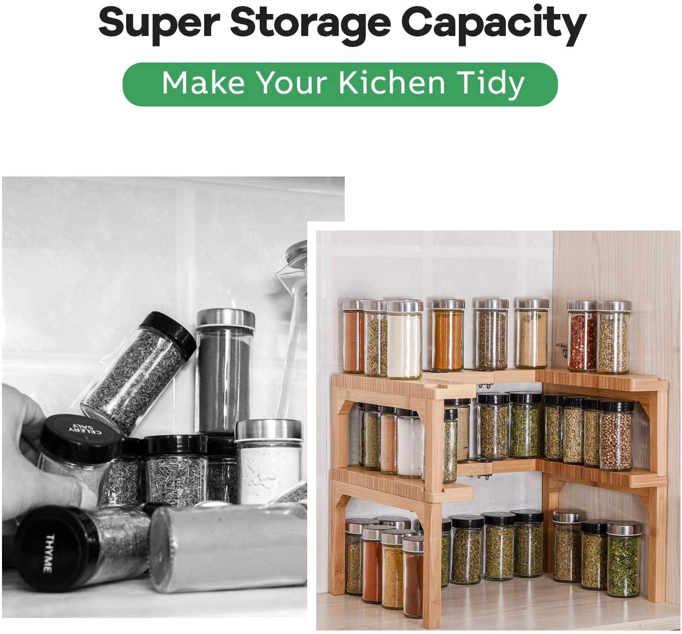 Bamboo Wood 2 Tier Expandable Spice Jar Rack Kitchen Cabinet Pantry Shelf Organizer