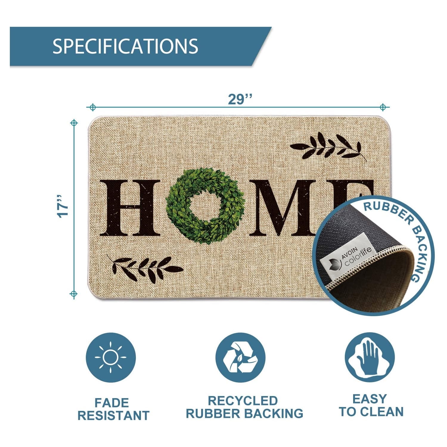 AVOIN colorlife Home Quote Boxwood Wreath Decorative Doormat, Holiday Farmhouse Low-Profile Floor Mat Switch Mat for Indoor Outdoor 17 x 47 Inch