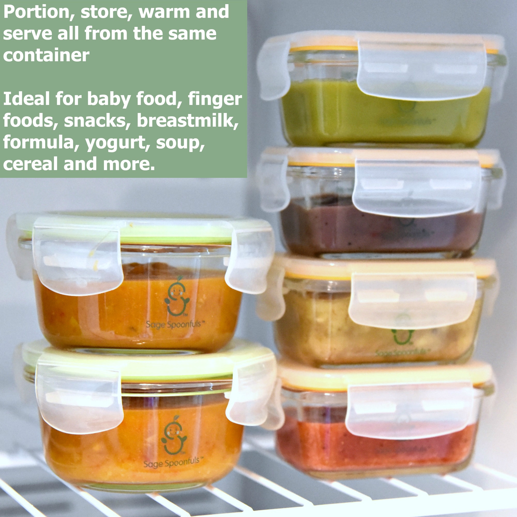 Sage Spoonfuls Tough Glass Combo Set 7oz and 4oz Borosilicate Glass Baby Food Storage Containers With Snap-On Lids (6-Pack)