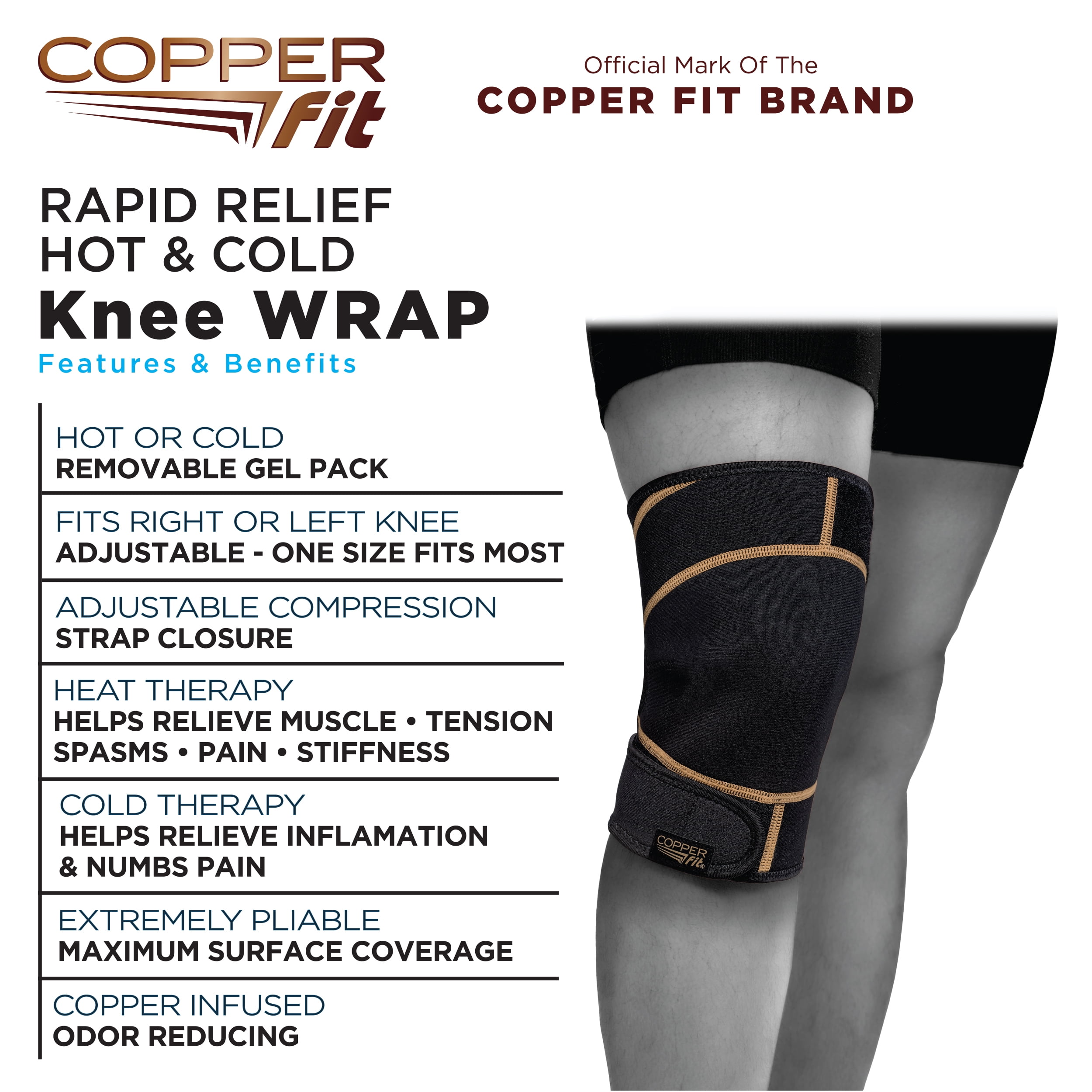 Copper Fit Rapid Relief Knee Compression Wrap with Hot/Cold Therapy, Adjustable