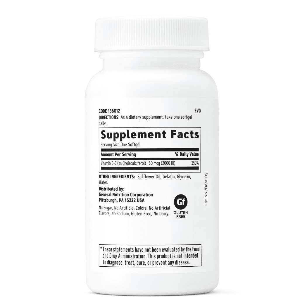 GNC VITAMIN D3 2000 IU, 180 Softgel Capsules, Supports calcium absorption to support healthy teeth and bones, Gluten Free