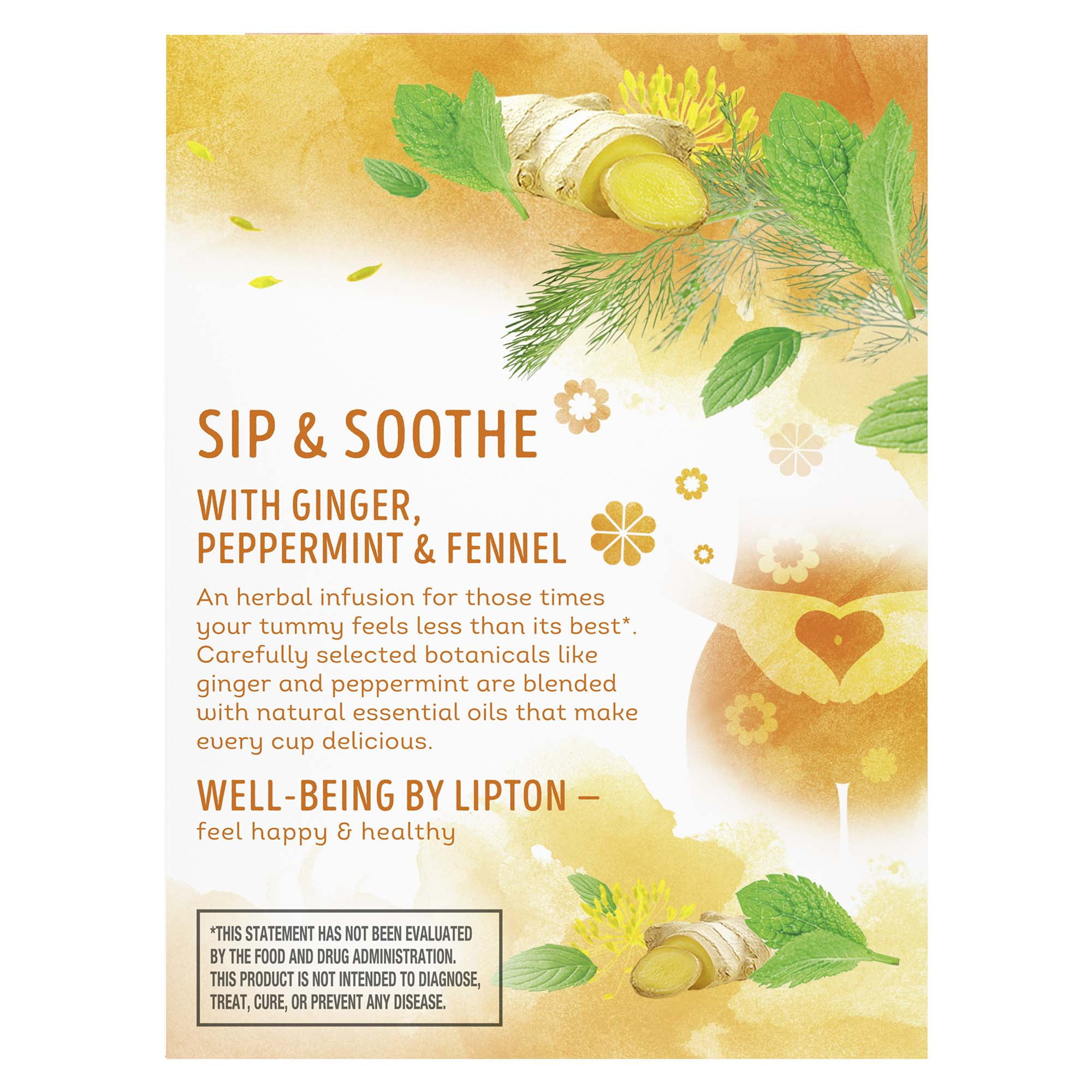 Lipton Soothe Your Tummy Herbal Supplement Tea Bags Ginger, Peppermint, and Fennel For a Soothing Hot Beverage Caffeine Free Tea Blend 15 Count