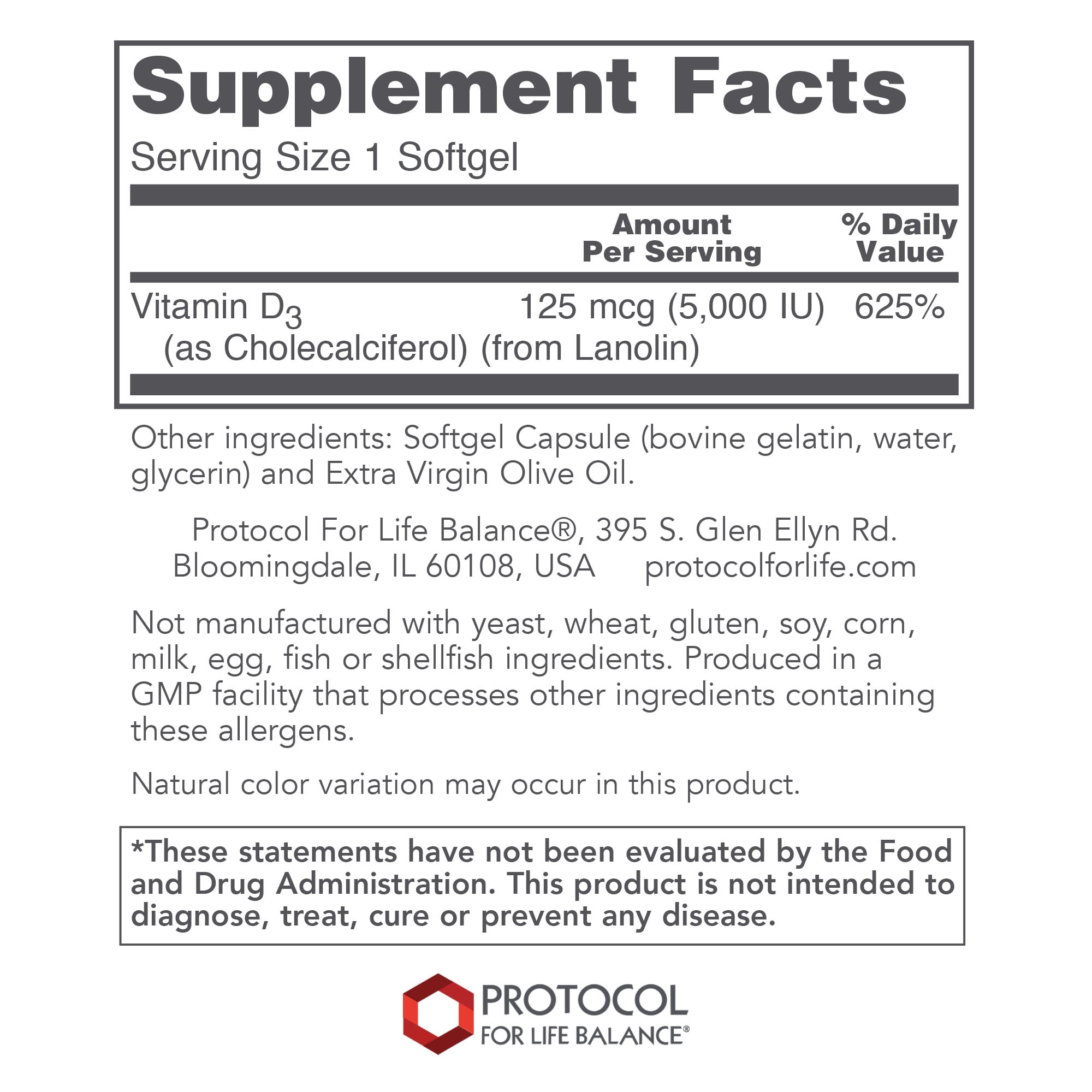 Protocol for Life Balance Vitamin D3 5,000 IU (125 mcg) – 120 Softgels