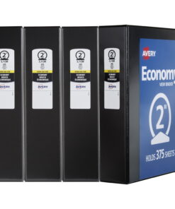 Avery Economy View 3 Ring Binders, 2′ Round Rings, 4 Black Binders (19205)