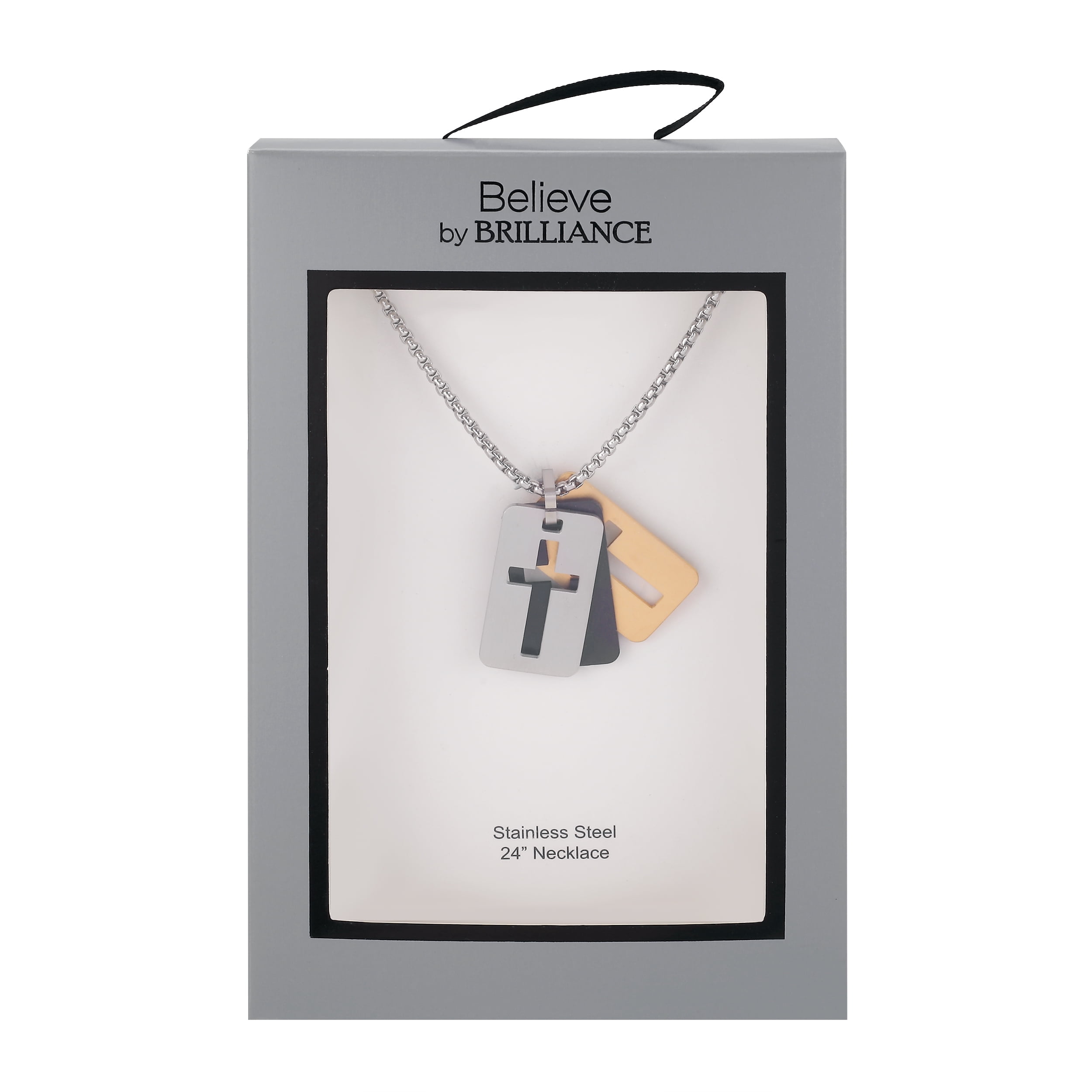Tri-Tone Stainless Steel Cross Dog 3 Piece Dog Tag Pendant Necklace, 24′ Length