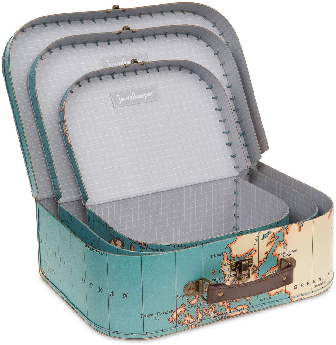Jewelkeeper Paperboard Female Suitcases, Set of 3 Nesting Storage Gift Boxes for Birthday