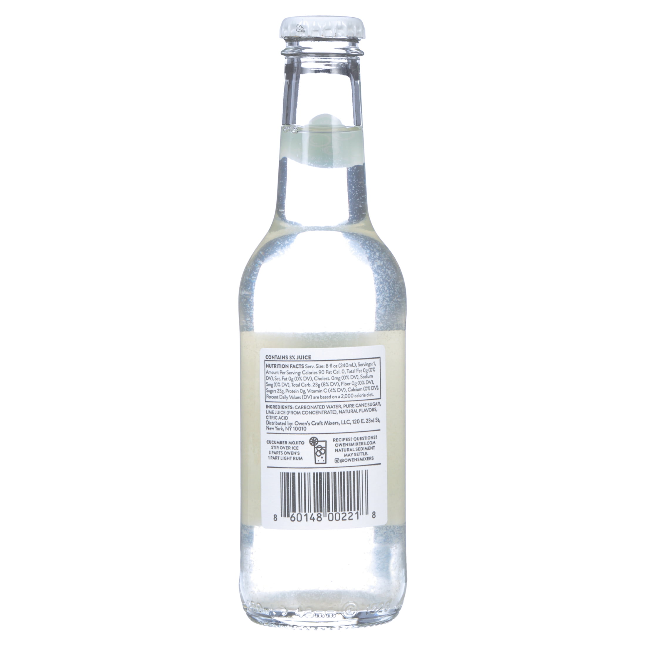 Owen’s Mint + Cucumber + Lime is a premium cocktail mixer made with high quality, real ingredients. Designed to provide a well-balanced, multi-ingredient, refreshing flavor combination that is an easy to drink cocktail when combined with any clear spirits. This mixer also makes a refreshing Cucumber Julep when mixed with Bourbon. Owen’s Mint + Cucumber + Lime is a fan favorite and won the 2019 "Best of Class, Platinum" Sip Award for Carbonated Mixers. Pairs with: Light Rum, Vodka, Bourbon.