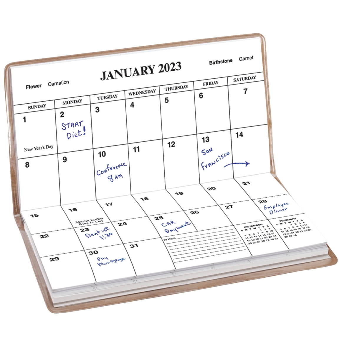 Make sure you stay organized day in and day out by using this two-year calendar refill from Walter Drake. This handy little calendar fits into any of our planner sizes measuring 6 3/4" x 3 5/8". Simply slide it in to update your planner for the next two years and stay on top of all those important activities you have coming up. Fill this calendar with all the details for kids’ sports practices, doctor appointments, work meetings, bill due dates, birthdays, anniversaries, vacations and more. With its convenient size, this calendar refill is easy to take along in a pocket or purse so you’ll always have access to your schedule and can write in new event details on the go