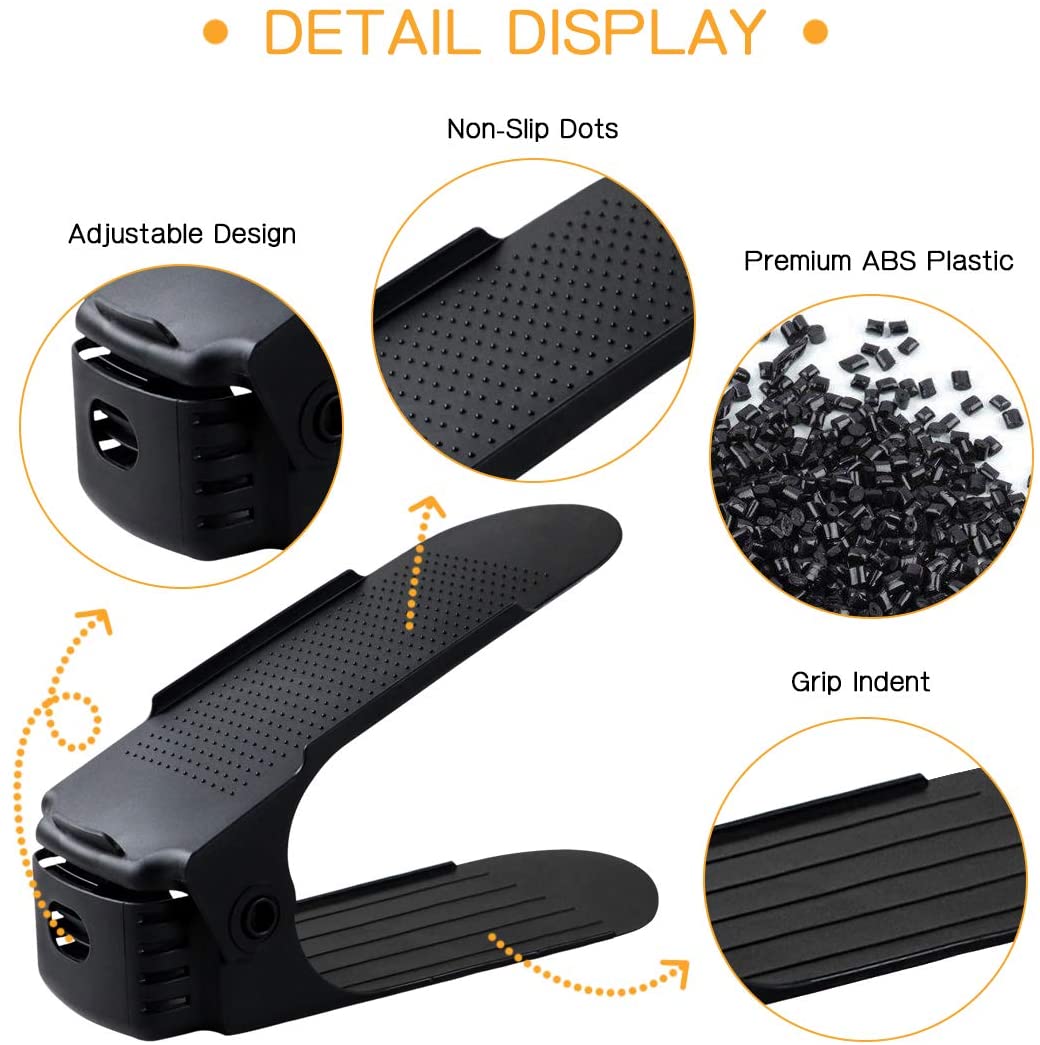 - 【UPGRADED QUALITY】Our shoe organizer is made from eco-friendly, high quality ABS plastic that’s sturdy and more durable. Firmer grip for your shoe sole. Flatter base for better stability. Long lasting shoe storage solution.
