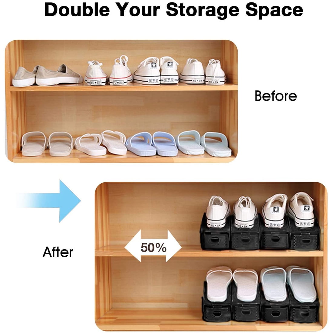 - 【50% SPACE SAVING】The double deck shoe rack design help saves 50% of your storage capacity immediately and helps you find the right shoes quickly.Preserve your shoes while at it, stay neat and orderly. Stack all your shoes with this shoe slots organizer.